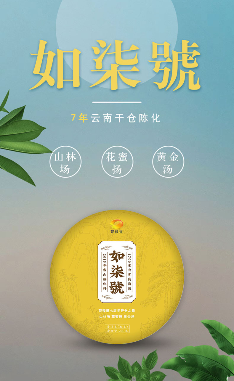 茶频道自营 普洱生茶 如柒号 七周年纪念茶 200g/饼