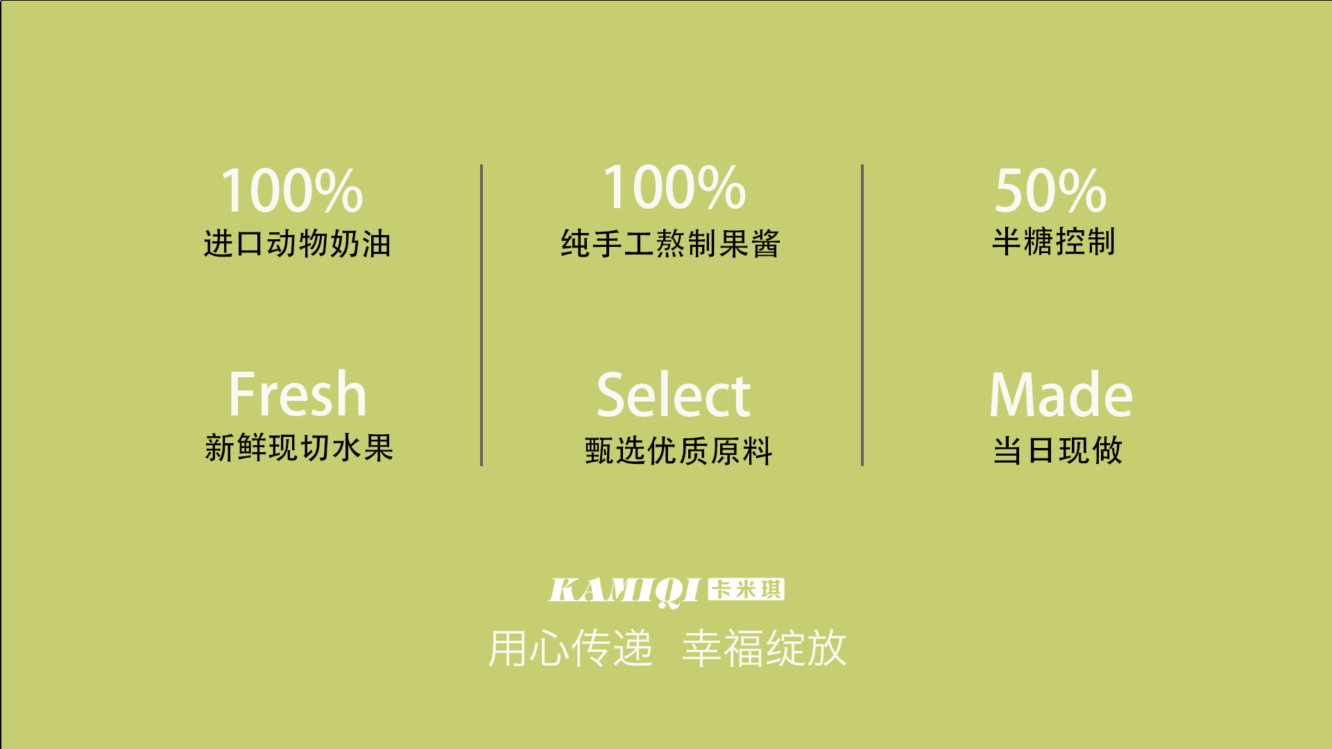 - KAMIQI卡米琪,具有一颗天然匠心,追逐本真食材,呈现健康美食的高端蛋糕品牌。24小时自助订购平台,专业冷链配送新鲜到家。