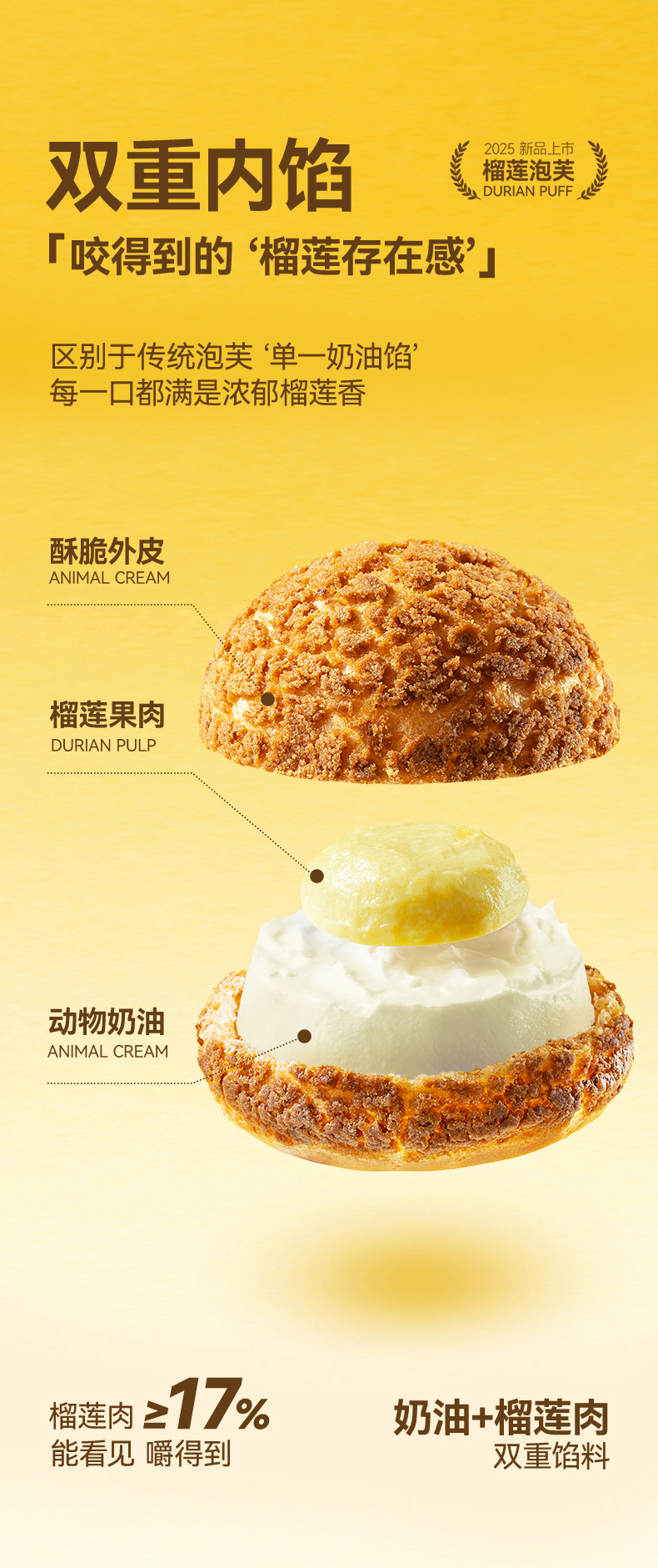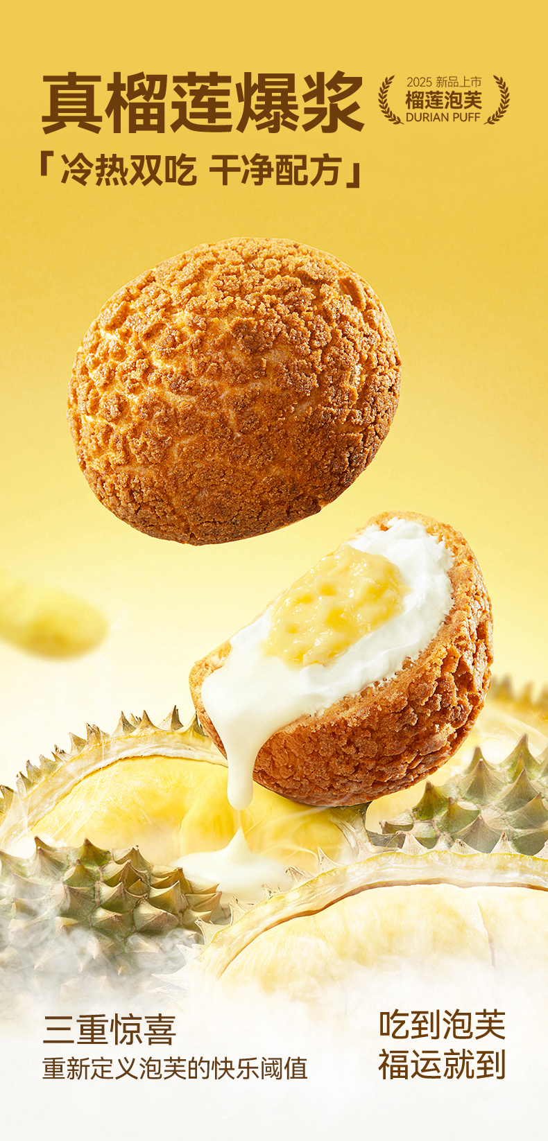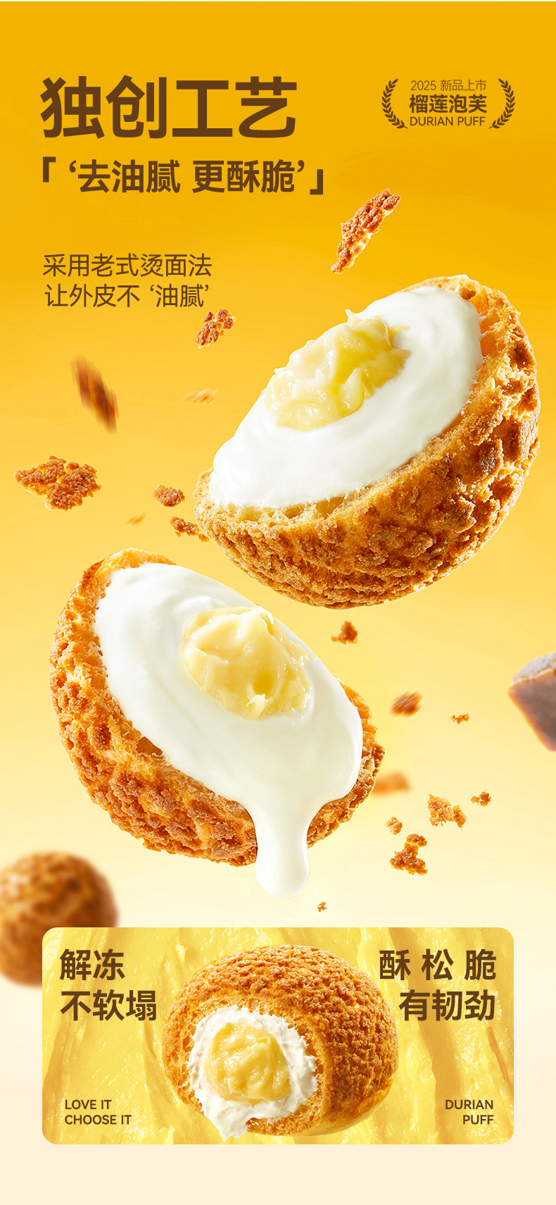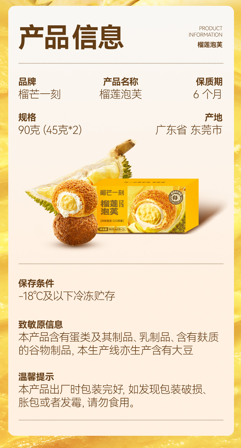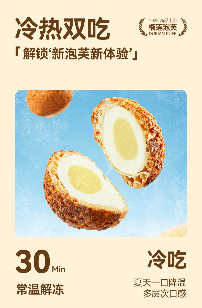 【新品上市】榴芒一刻榴莲泡芙90克(45g*2枚)/盒 奶油+榴莲果肉双重内陷