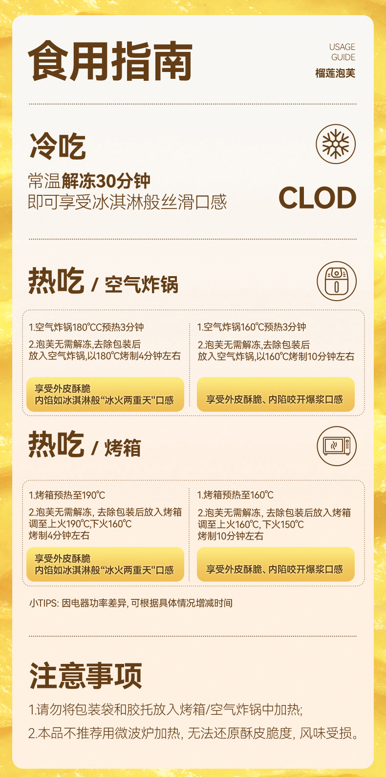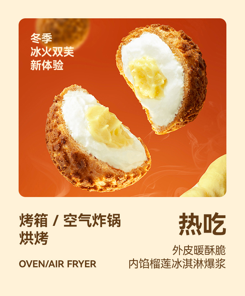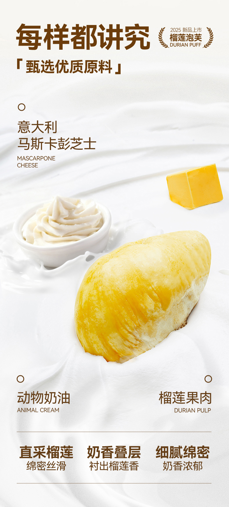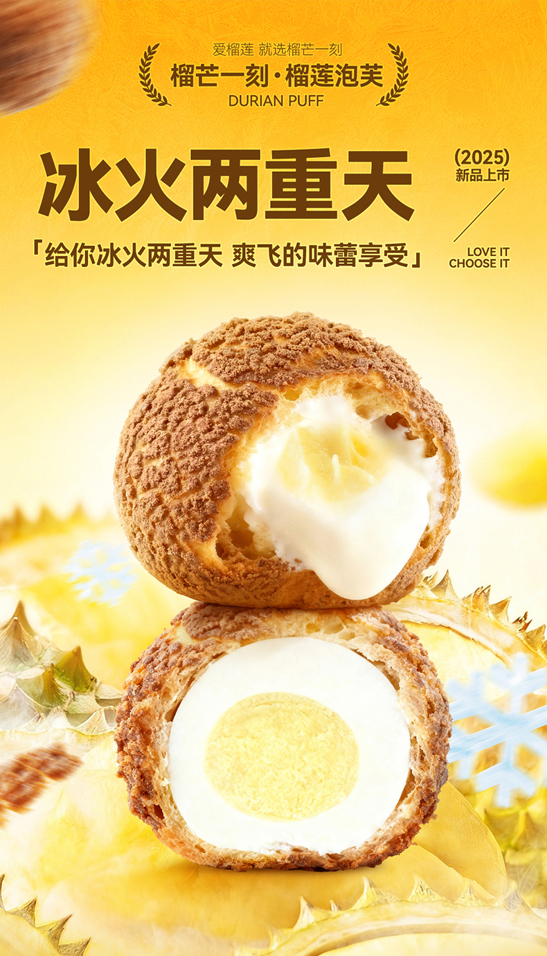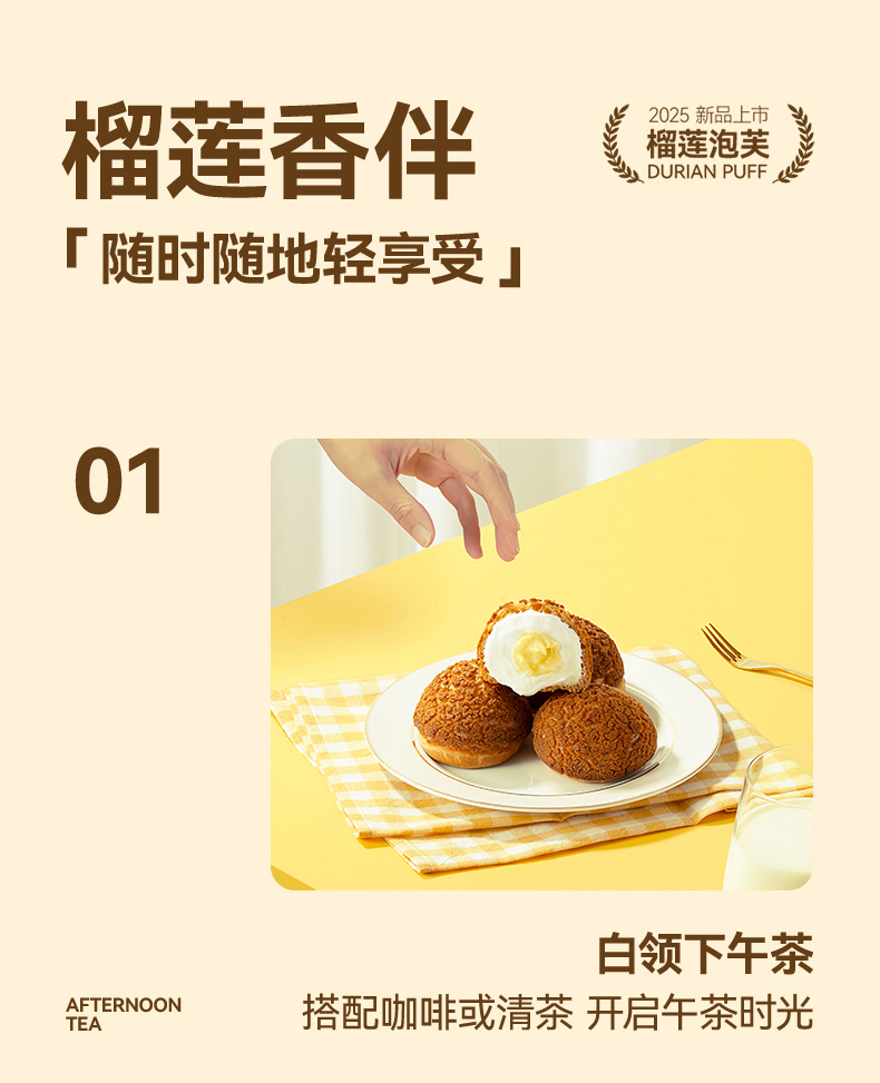 【新品上市】榴芒一刻榴莲泡芙90克(45g*2枚)/盒 奶油+榴莲果肉双重内陷