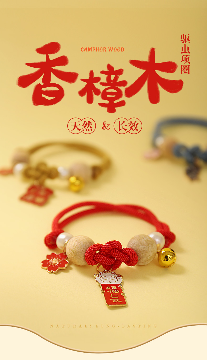 猫咪项圈饰品狗狗脖圈猫铃铛香樟木项链用品宠物配饰