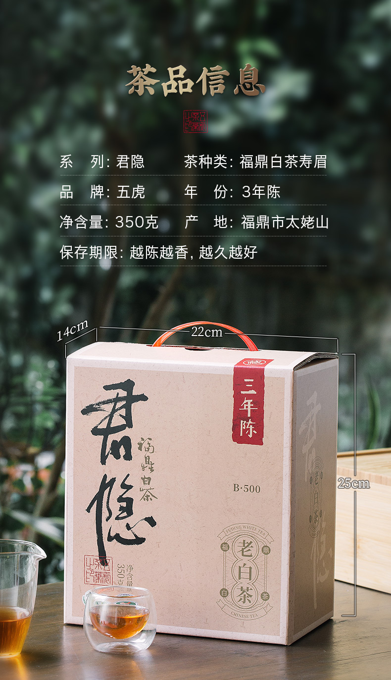 茶叶 福鼎白茶 老白茶 寿眉散茶 3年老寿眉 茶饮 五虎 350g