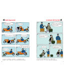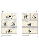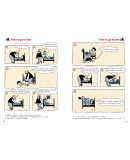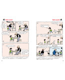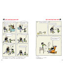 事实上,当漫画和文字走到一起的时候,所表现的不仅仅是简单的图画和文字的叠加,更是一种乘积的效果。例如在本系列第一册的漫画故事“Time for dinner”中,单看图画,展示的是本去叫儿子吃饭的爸爸反被儿子的书所吸引,虽然逗趣,但也就一笑而过了。但是再看文字,最后一幅图中儿子皱着眉头说:“Dad, give me a break,will you?”(爸爸,你能靠谱点儿吗?)顿时将符合儿子心情的、鲜活的英语表达具体地呈现了出来,使读者在感受到浓浓的父子情和幽默气息的同时,学会该场景下地道英语的表达。这种恰到好处、浑然一体的图文搭配贯穿全书,有别于单纯的文字或图画读物,展现出本书独特的魅力。