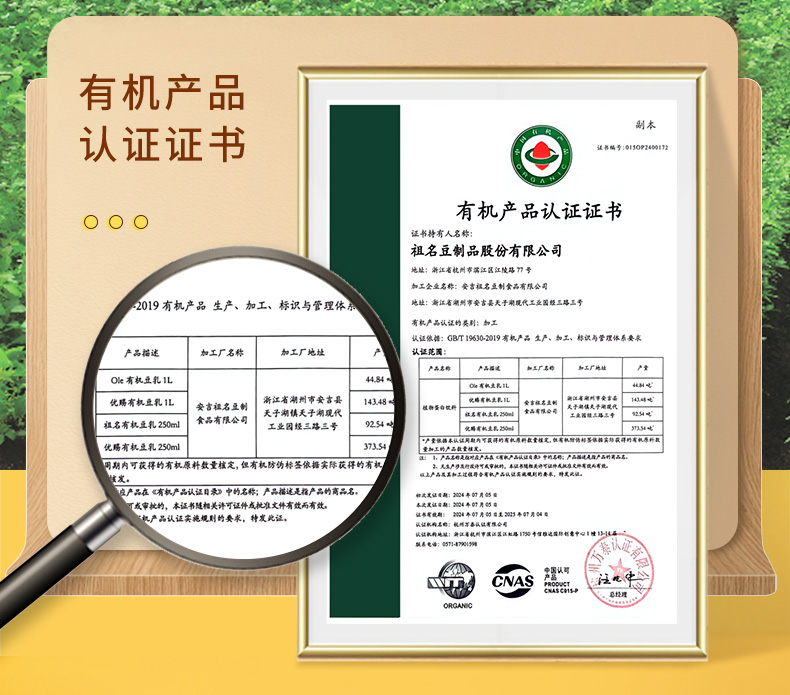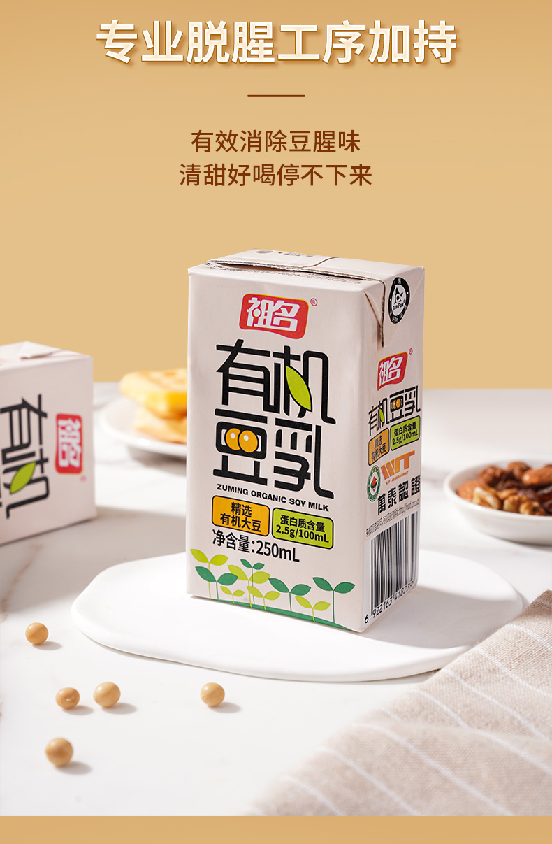 祖名 有机豆乳250mL 精选有机大豆(蛋白质含量2.5g/100mL)