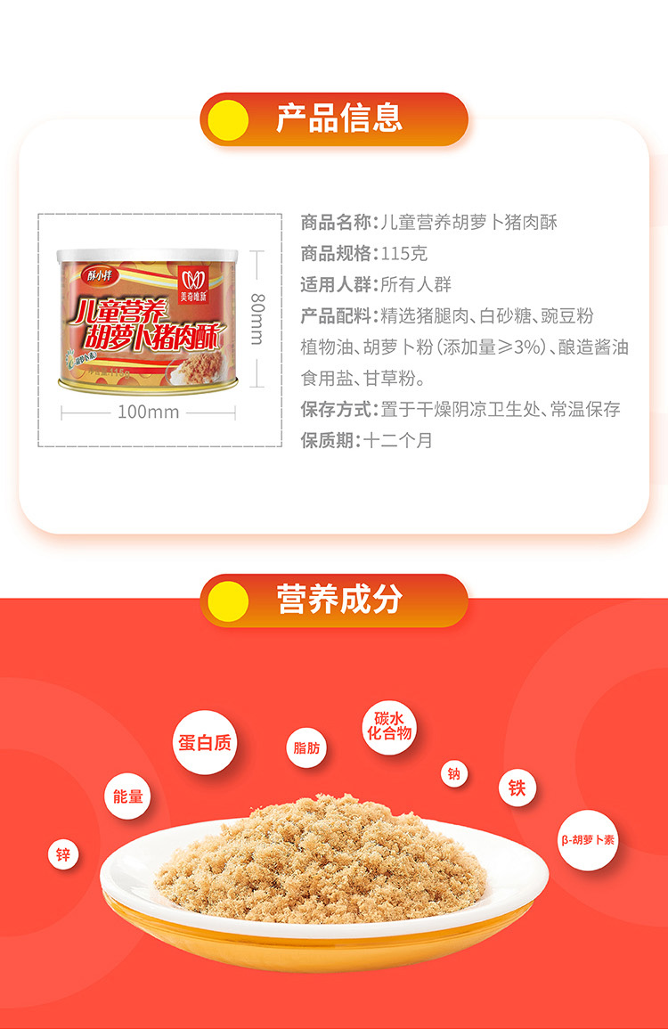 【休闲食品 肉酥】美奇唯新 115g儿童营养胡萝卜肉酥