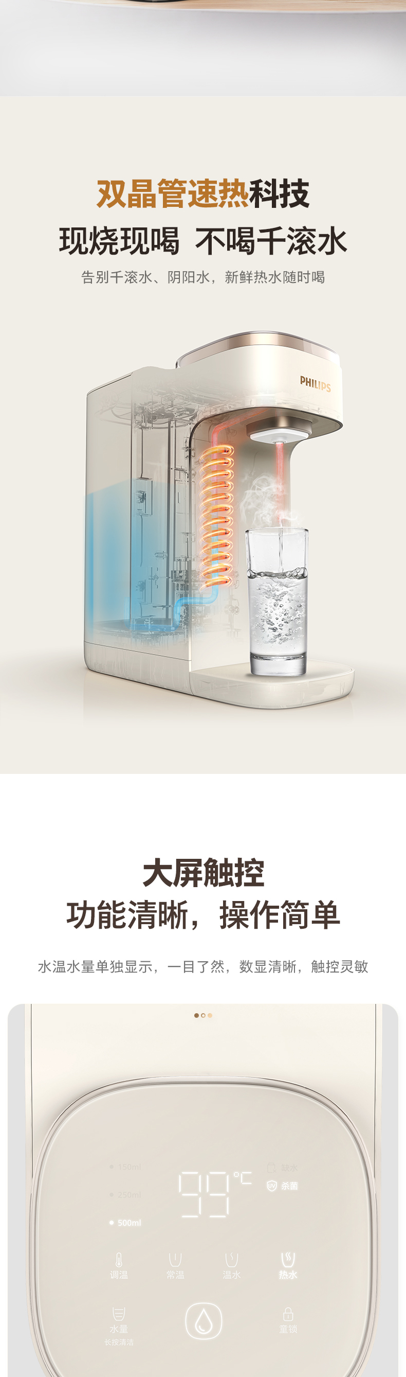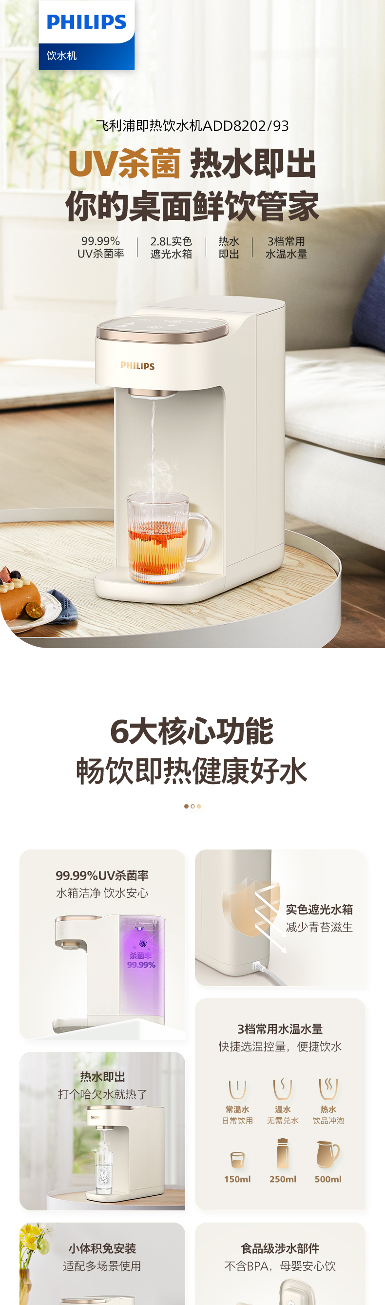 飞利浦(PHILIPS)即热式饮水机家用小型速热桌面直饮饮水器纯净水加热一体机D23 ADD8200 ADD8210 ADD8202(杀菌款)