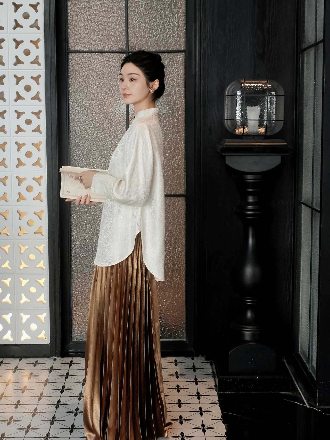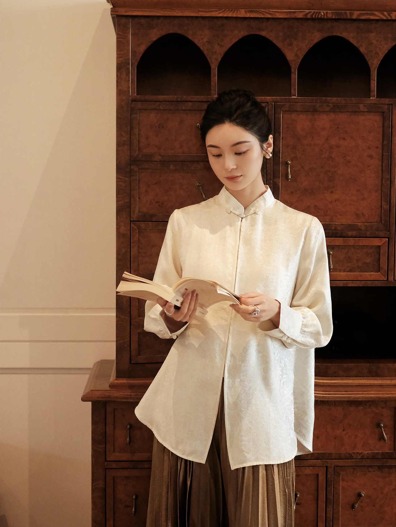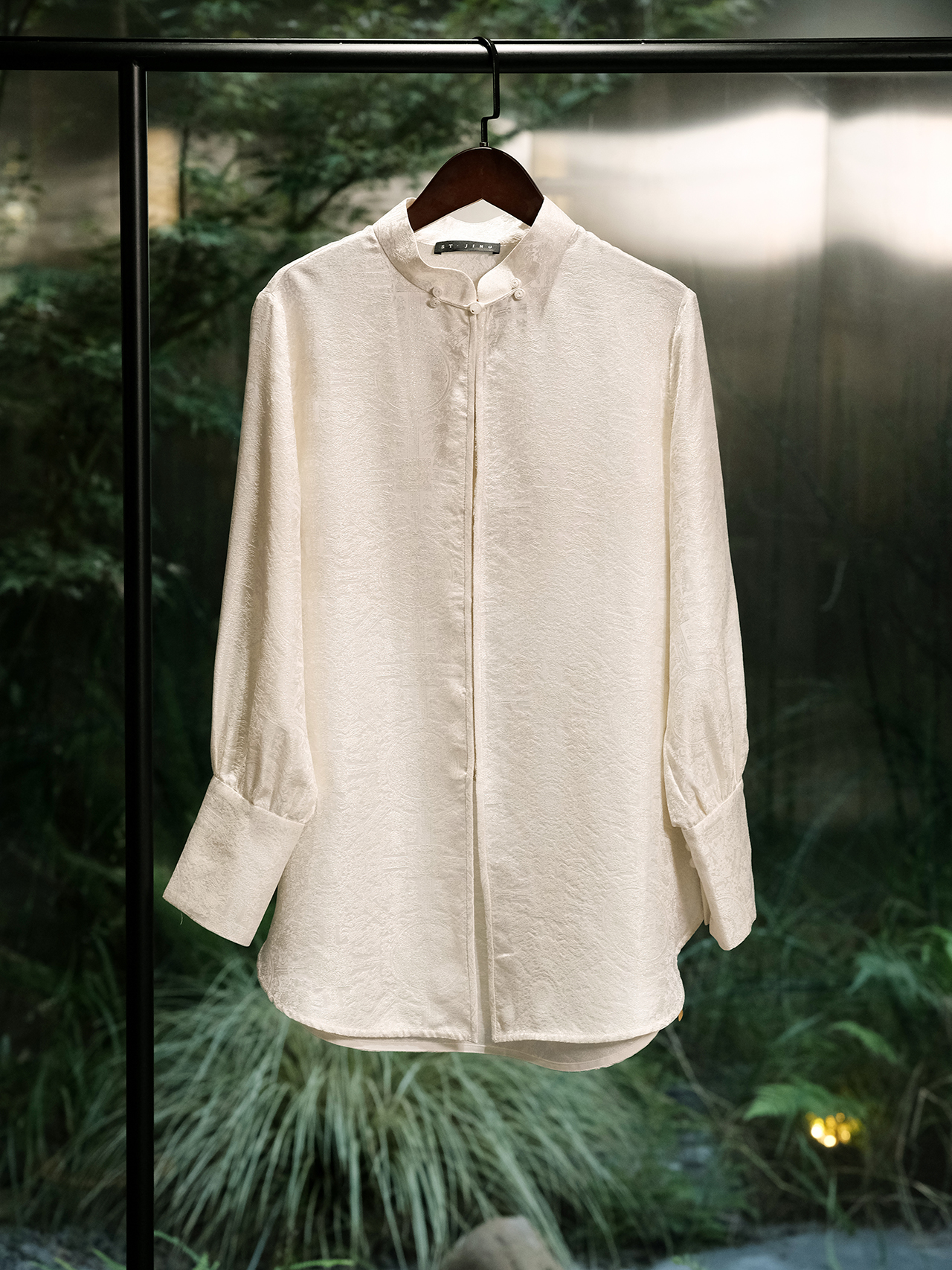 盛唐婧 | 新中式织金真丝百搭时尚款长衬衫-白色