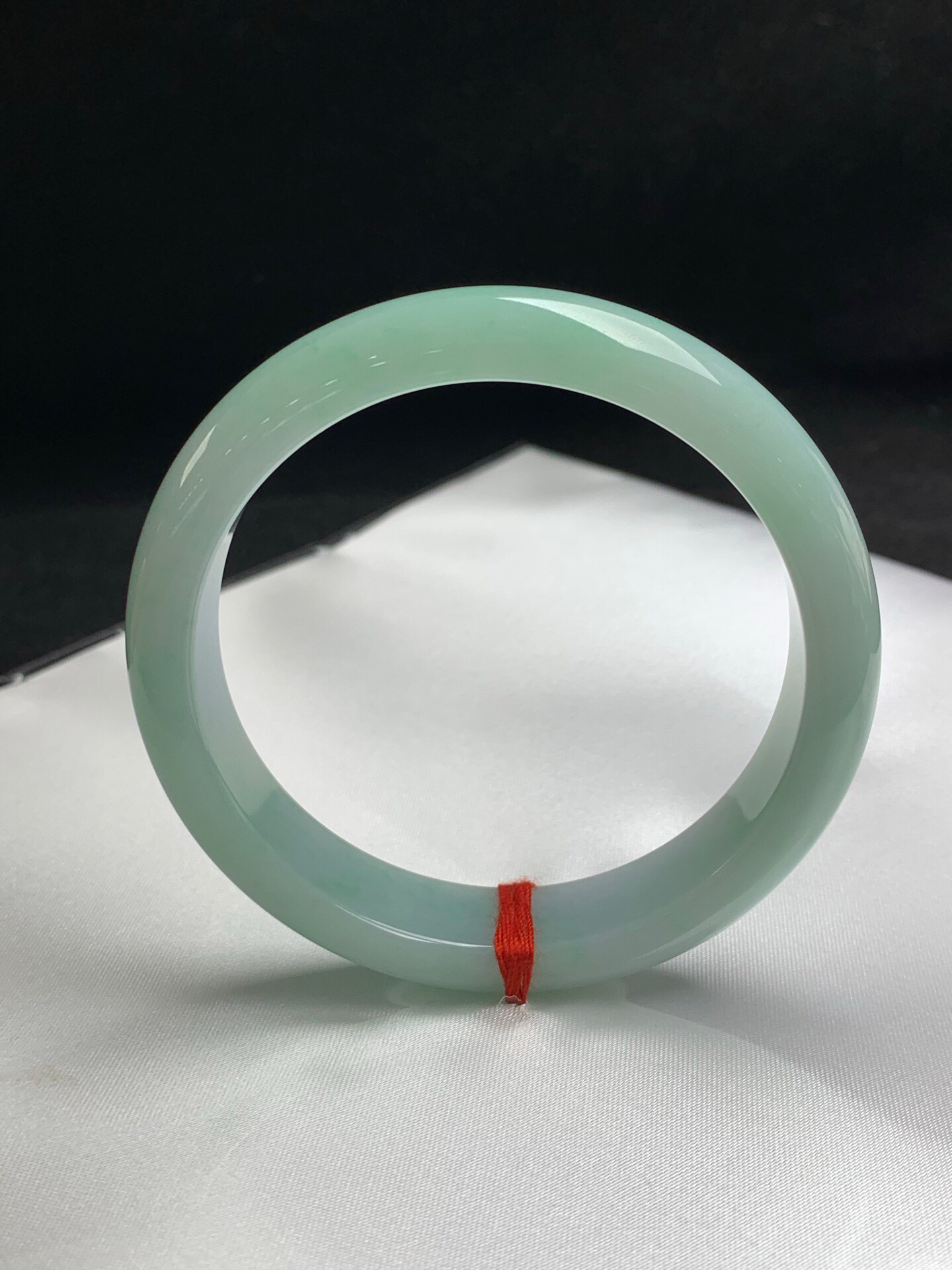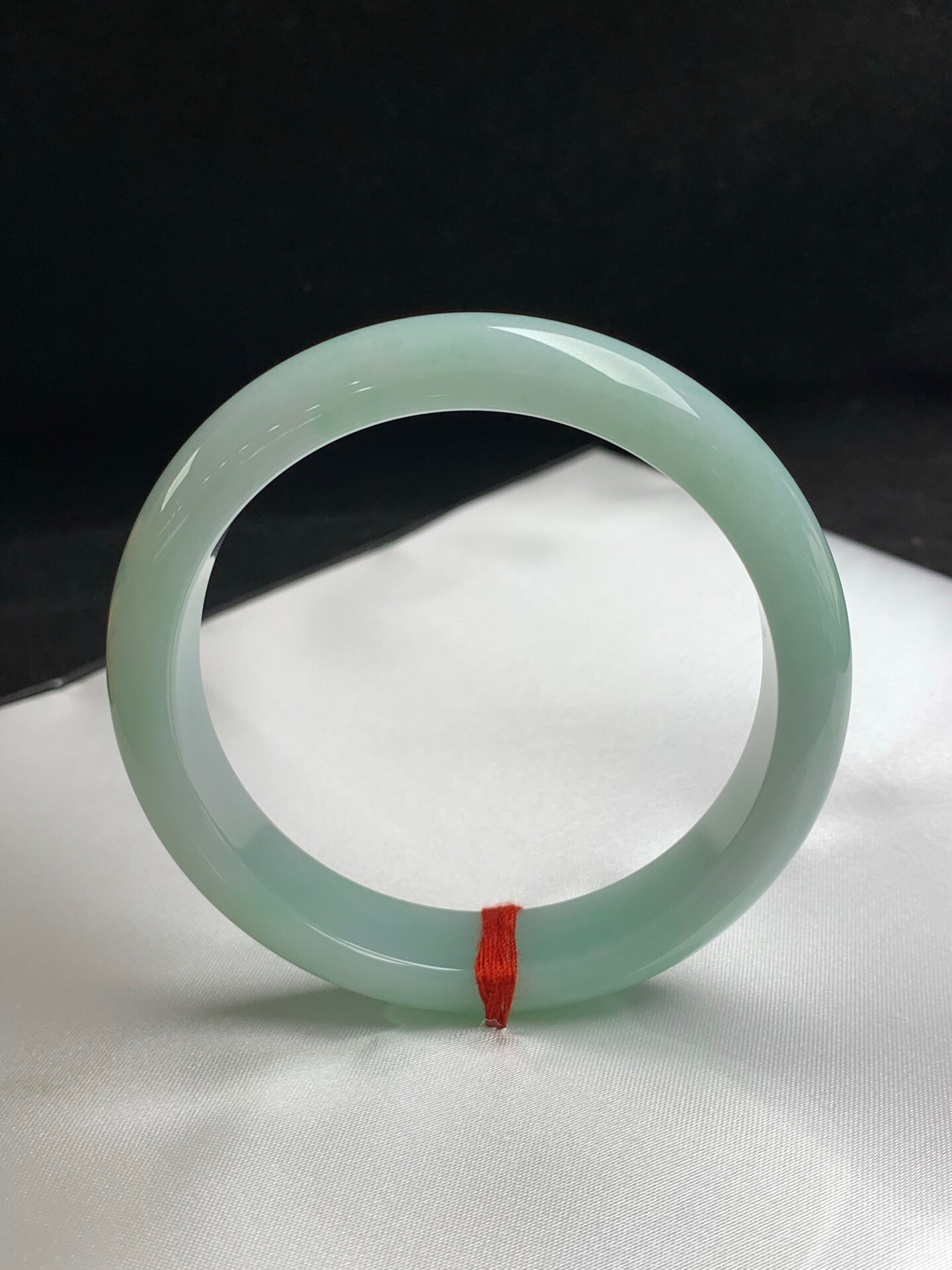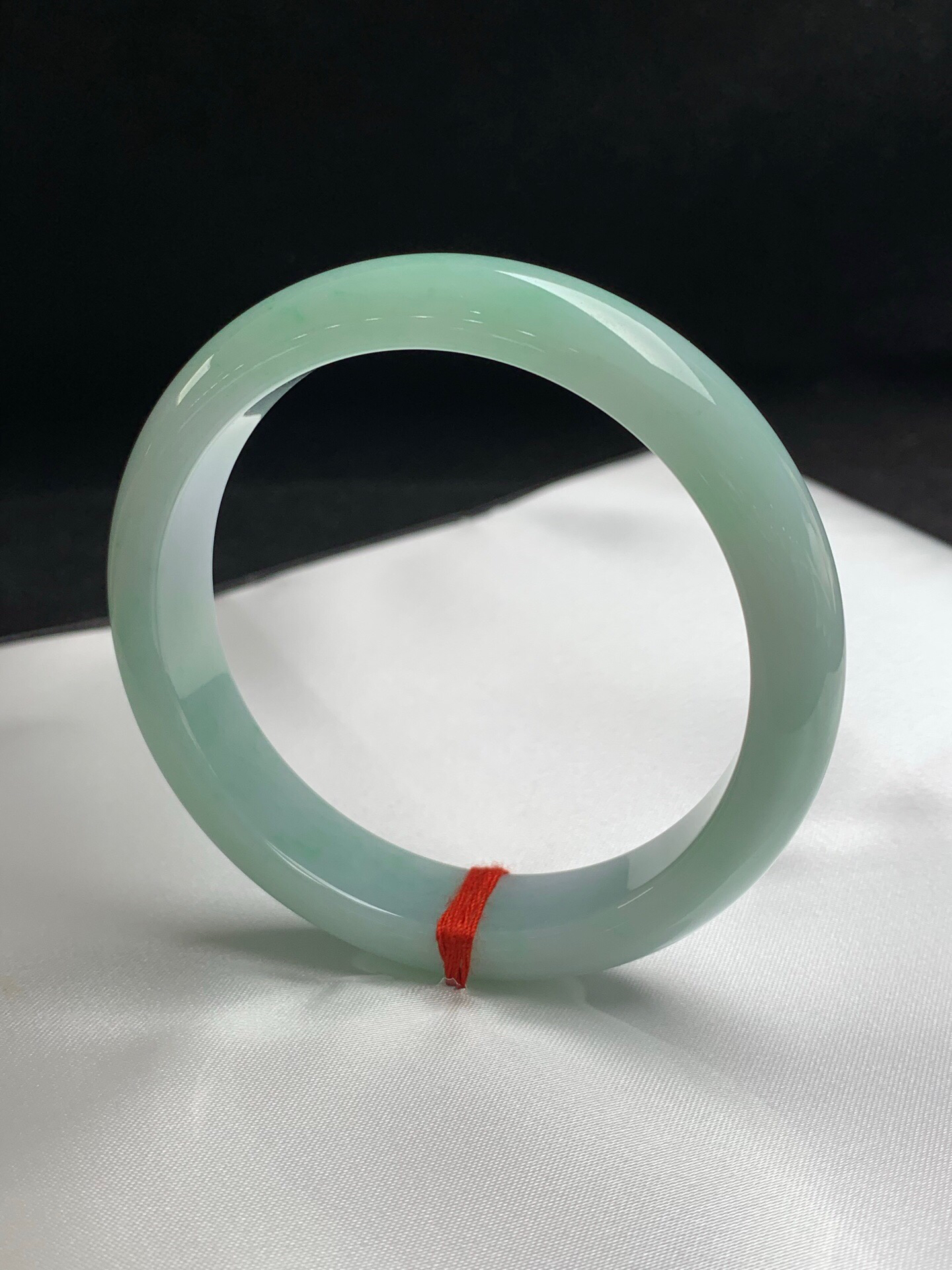 620726,56.3飘绿圆条手镯。12.5mm,条形好,整条带浅绿底,干净清爽,完美的