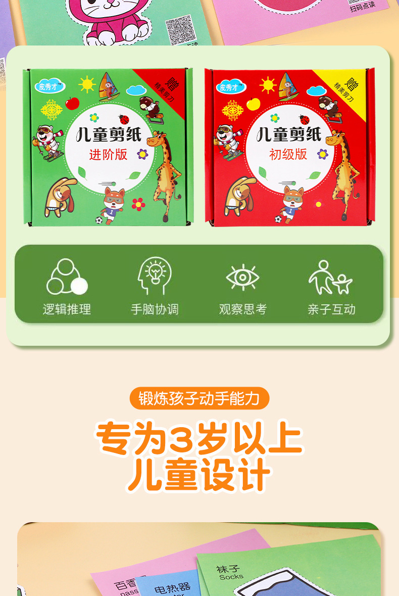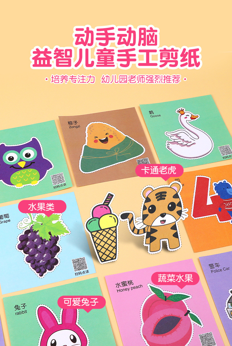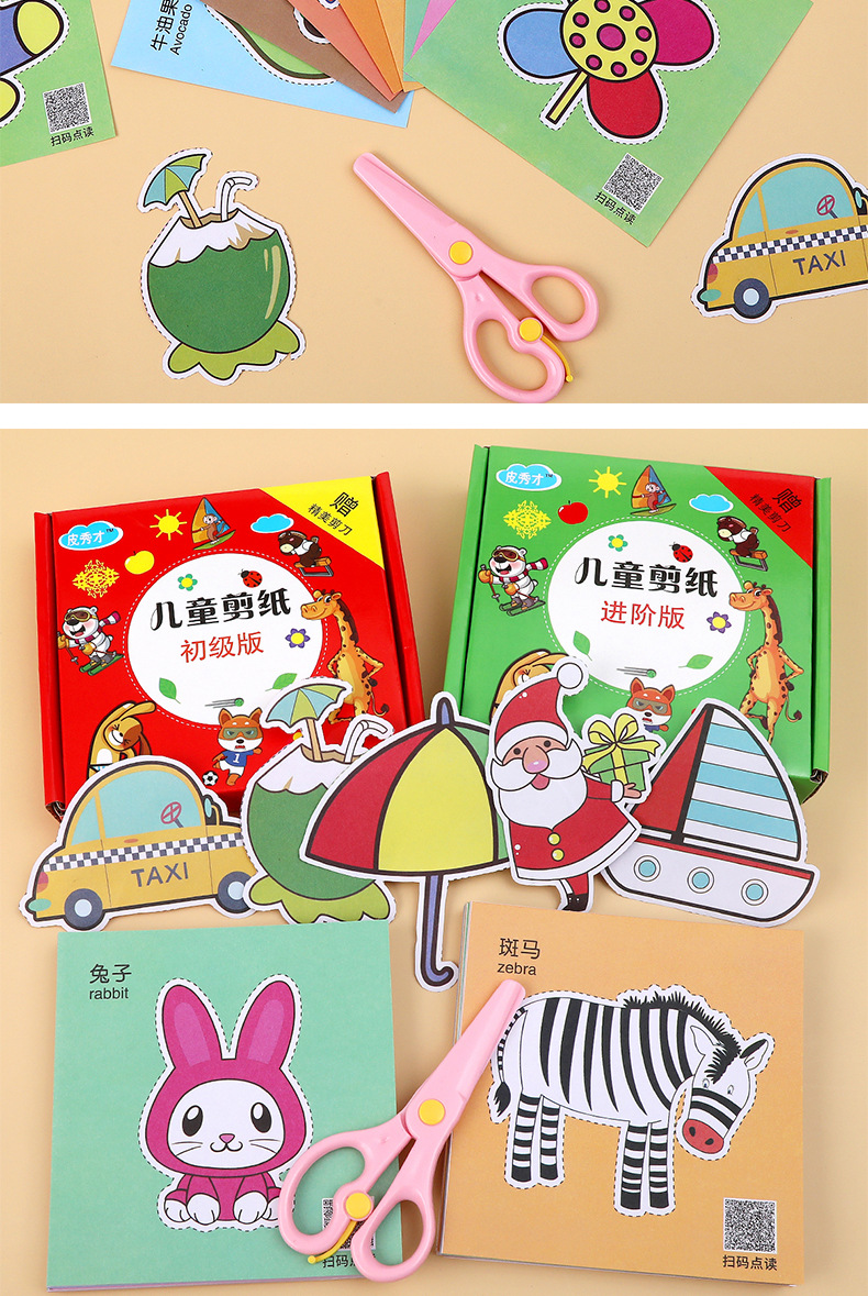 【赠送2把剪刀❗益智早教手工剪纸】培养专注力,锻炼孩子动手能力,图案丰富创意不重复,玩具儿童趣味剪纸套装幼儿园小学生礼物六一QQ