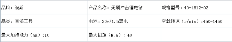波斯 无刷冲击锂电钻 -40-4812-02(20/1.5) BS665111