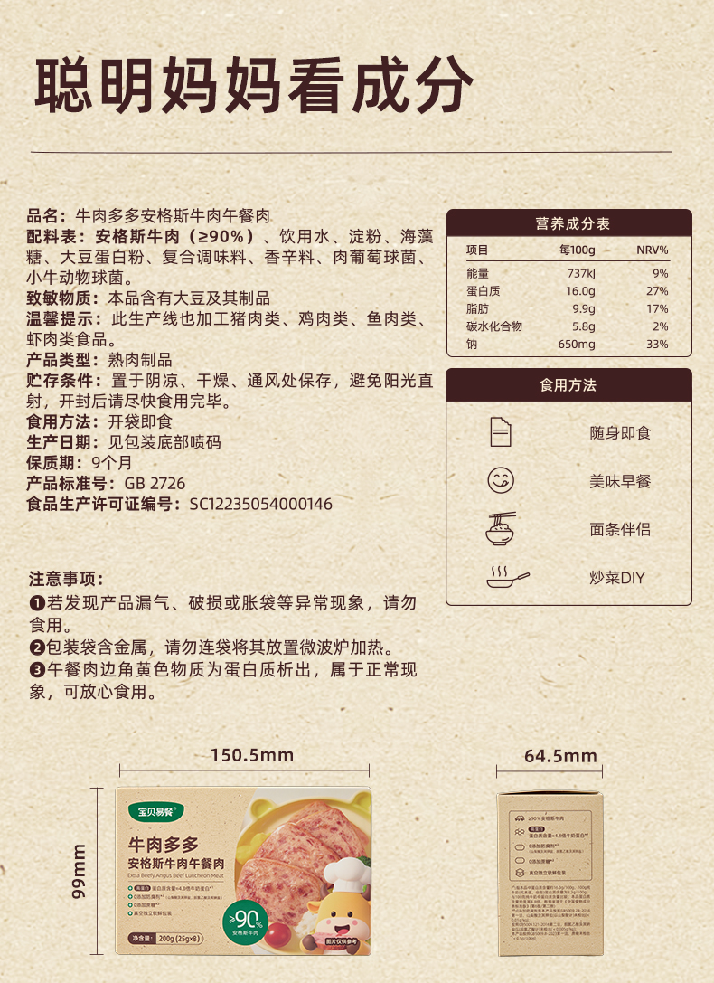 宝贝易餐牛肉多多安格斯牛肉午餐肉200g(25g*8)