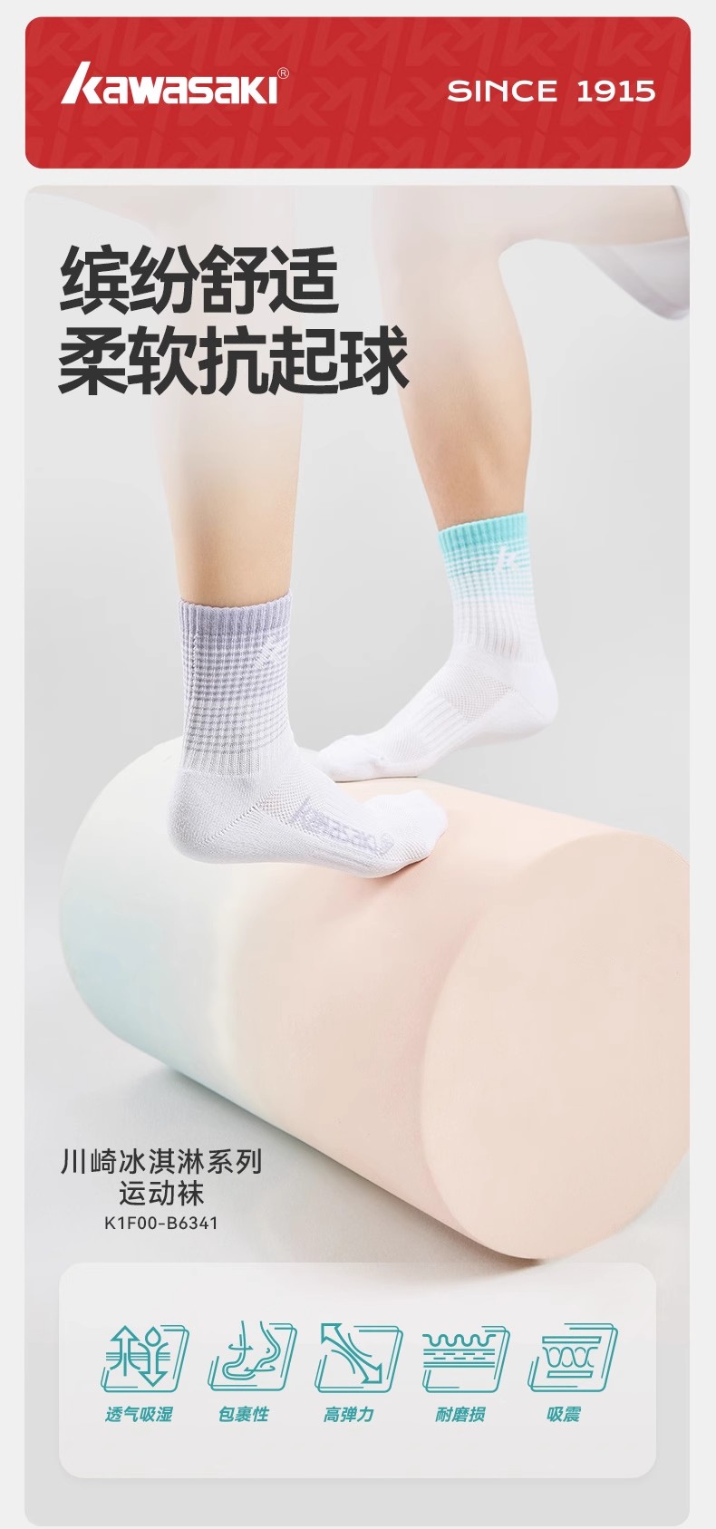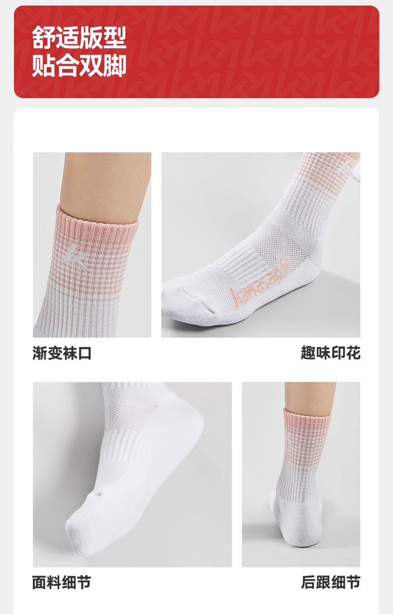 川崎 冰淇淋系列 羽毛球运动训练袜吸湿排汗渐变 男女同款 TRN 训练袜 K1F00-B6341