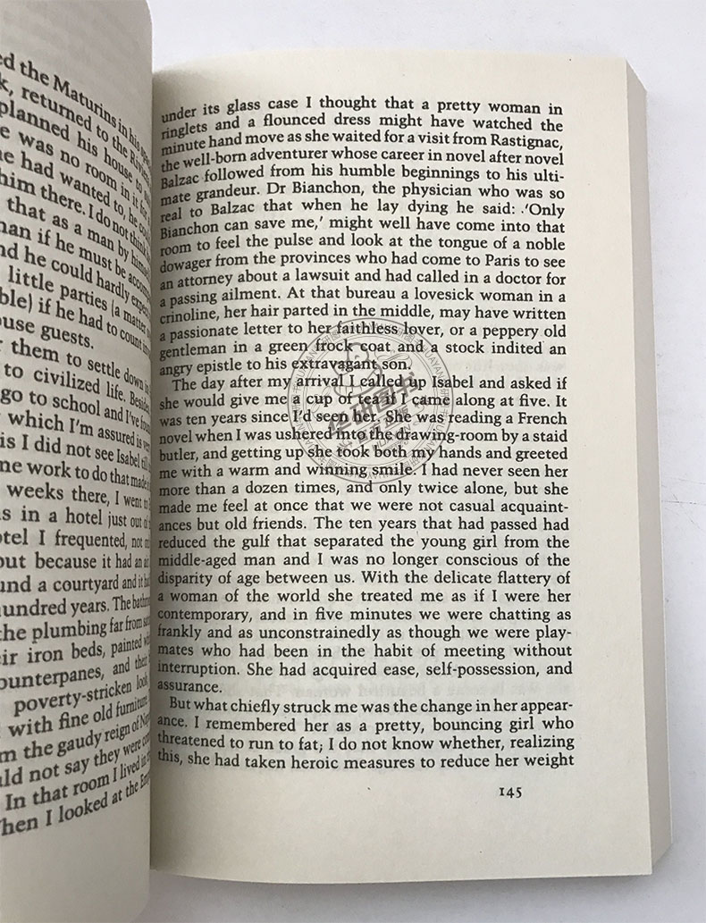 I have never begun a novel with more misgiving. If I call it a novel it is only because I don’t know what else to call it. I have little story to tell and I end neither with a death nor a marriage. Death ends all things and so is the comprehensive conclusion of a story, but marriage finishes it very properly too and the sophisticated are ill-advised to sneer at what is by convention termed a happy ending. It is a sound instinct of the common people which persuades them that with this all that needs to be said is said. When male and female, after whatever vicissitudes you like, are at last brought together they have fulfilled their biological function and interest passes to the generation that is to come. But I leave my reader in the air. This book consists of my recollections of a man with whom I was thrown into close contact only at long intervals, and I have little knowledge of what happened to him in between. I suppose that by the exercise of invention I could fill the gaps plausibly enough and so make my narrative more coherent; but I have no wish to do that. I only want to set down what I know of my own knowledge.
