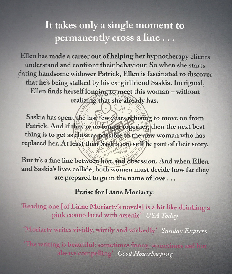★《大小谎言》、《因为是你》作者,高居《纽约时报》畅销榜的澳籍女作家★令“恐怖小说之王”斯蒂芬·金和鬼才导演大卫·林奇拍案叫绝的心理刻画 ★一段点亮彼此人生的爱情,却变成讳莫如深的记忆 ★在他们各自前行的路上,悲伤与愤怒如影随形,理智与情感纠葛难分 在爱情里,我们都是自己的主角、他人的过客,The Hypnotist's Love Story《不眠之爱》是一部浪漫却尖锐的爱情故事。这是一场夹杂着伤害与救赎的人生旅途,有关失去与逃避,也有关原谅与新生。 媒体评论:“一个发生在速食时代的诙谐又美好的爱情故事,莉安、莫利亚提塑造了一个极其可爱的女主角。”——《书单》 “一场关于挫折与救赎的爱情,热忱幽默夹带着轻轻的凄美。”——《今日美国》The Hypnotist's Love Story is a gripping exploration of love and obsession, from the bestselling author of the hit HBO series Big Little Lies.How far would you go to keep the man of your dreams? Hypnotherapist Ellen is fascinated by what makes people tick. So when she falls in love with Patrick, the fact that he has a stalker doesn't faze her in the slightest. If anything it intrigues her, and the more she hears about Saskia, the more she wants to meet this woman. But what Ellen doesn't know is that they've already met . . . Saskia has been posing as one of Ellen's clients. Unable to let go of the life she so abruptly lost, she wants to know everything about the woman who took her place. And the further she inches her way into Ellen's world, the more trouble she stirs up. Ellen's love story is about to take an unexpected turn. But it's not only Saskia who doesn't know where to stop: Ellen also has to ask herself what lines she's prepared to cross to get the happy ending she's always wanted. Thought-provoking, sympathetic and smart, Liane Moriarty's The Hypnotist's Love Story is a novel for anyone who's ever loved, lost or found it hard to let go. Praise for Liane Moriarty:“One of the few writers I'll drop anything for” (Jojo Moyes) “Keeps you guessing until the very end”(Reese Witherspoon) “Moriarty writes vividly, wittily and wickedly” (Sunday Express) “Staggeringly brilliant, literally unputdownable”(Sophie Hannah) “The writing is beautiful: sometimes funny, sometimes sad but always compelling” (Good Housekeeping) “So well written that it pulls you in from the first page” (Sunday Mirror) “A hell of a good book” (Stephen King)