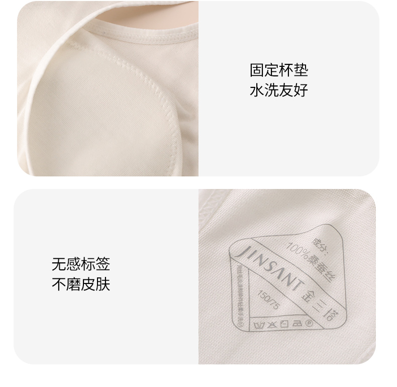金三塔真丝少女免穿文胸背心100%桑蚕丝带薄胸垫短舒适透气内衣新品 NZFFA710