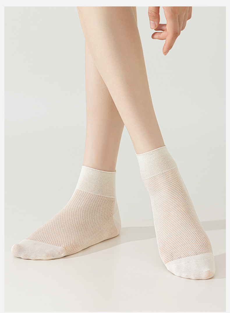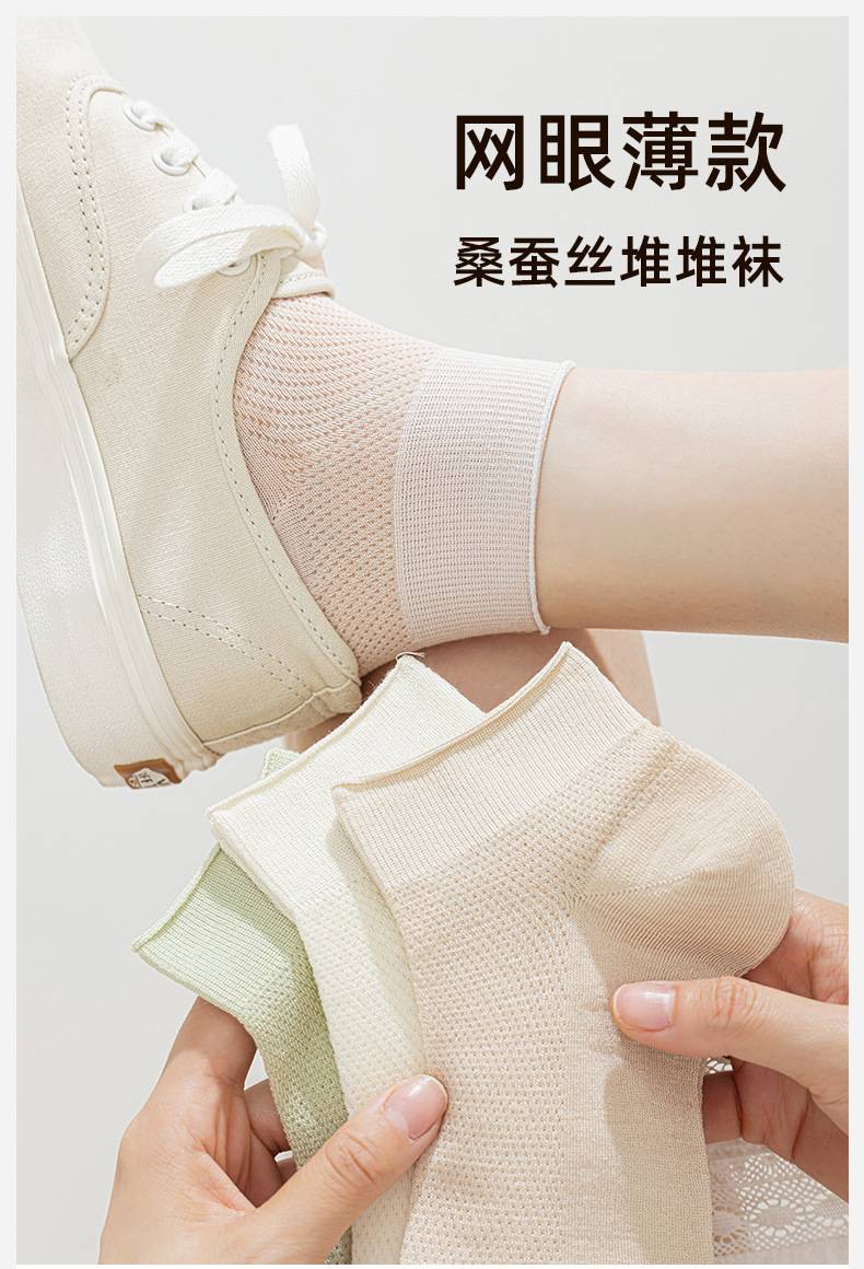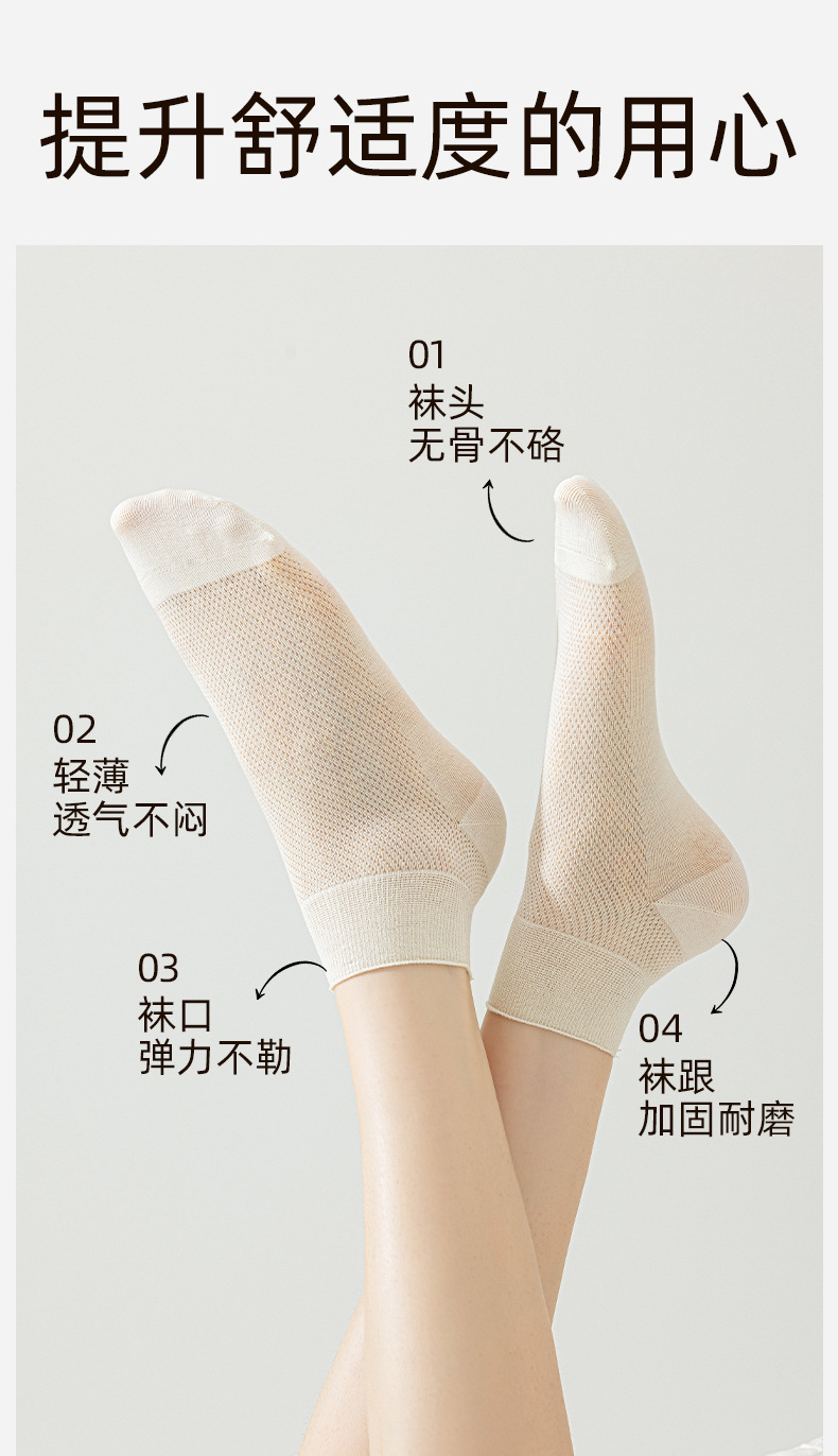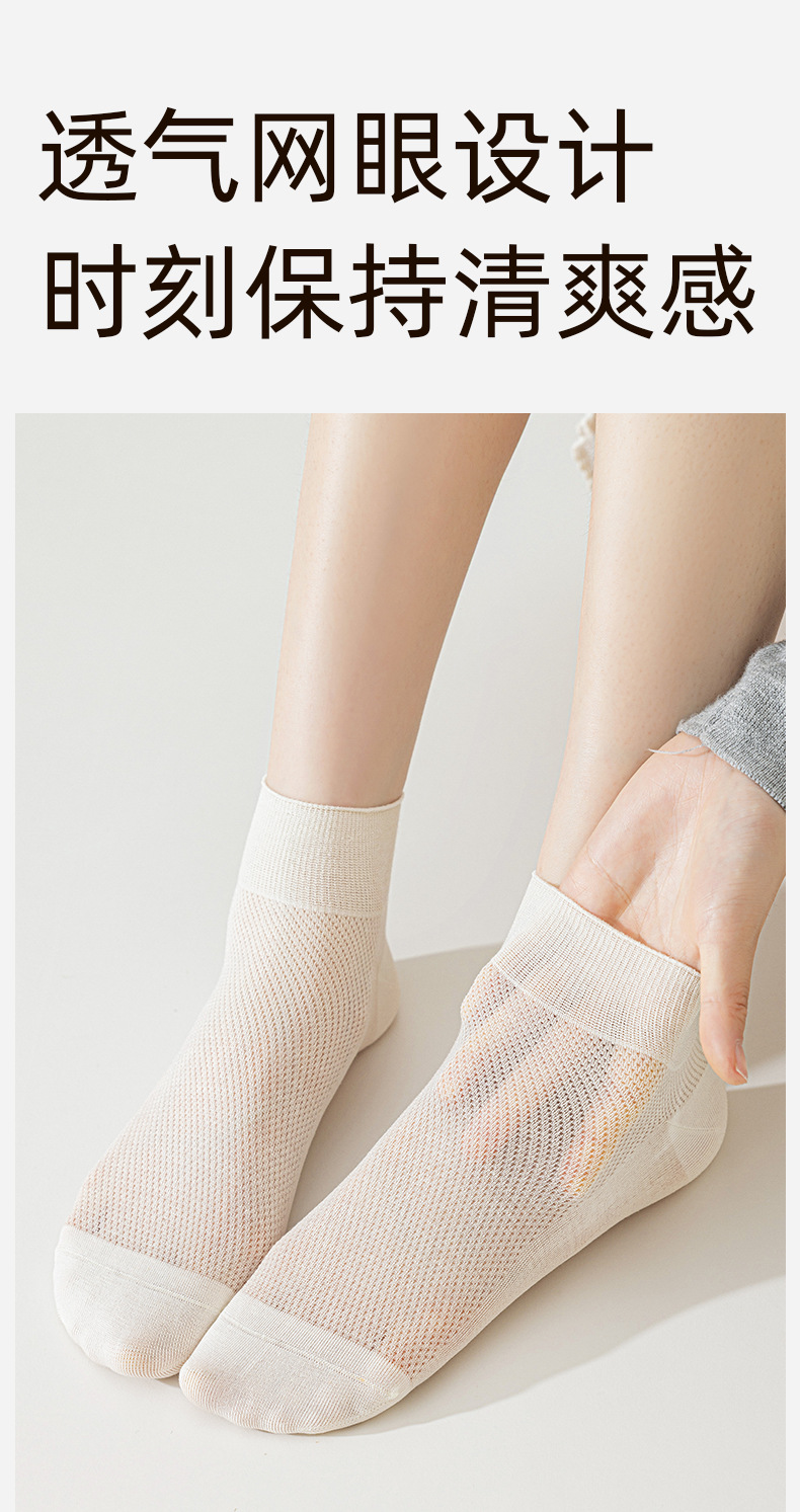 【凉感无骨 透气网眼】夏日桑蚕丝袜子女薄款无骨月子袜吸汗凉感网眼透气白色低帮短筒袜