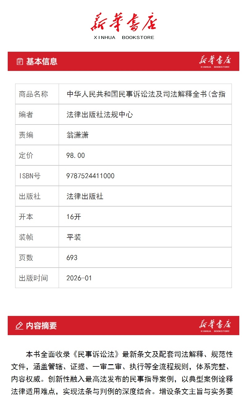 2026年版中华人民共和国民事诉讼法及司法解释全书:含指导案例