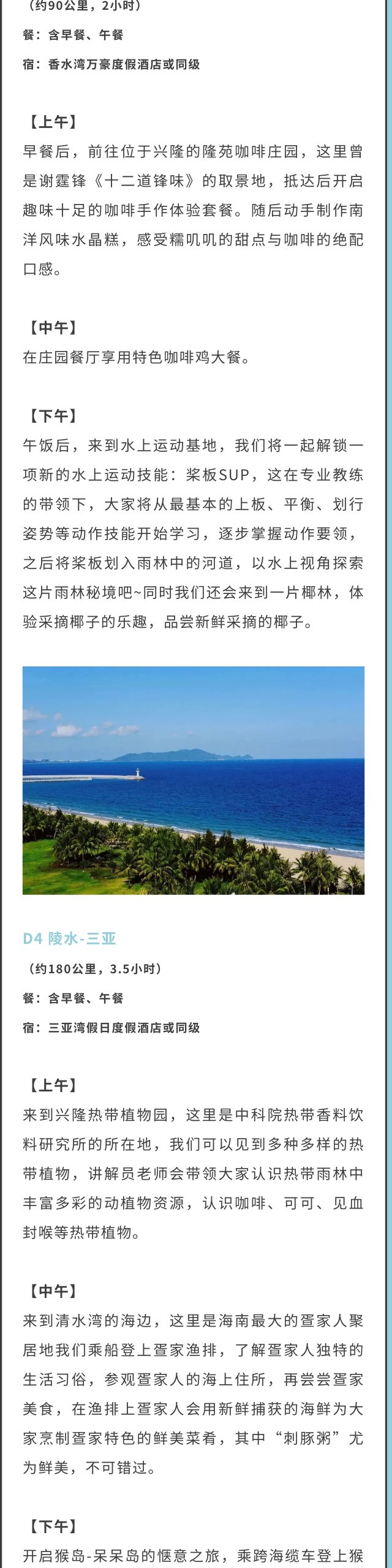 帆船体验,咖啡庄园咖啡、甜点手作,雨林桨板+椰子采摘。