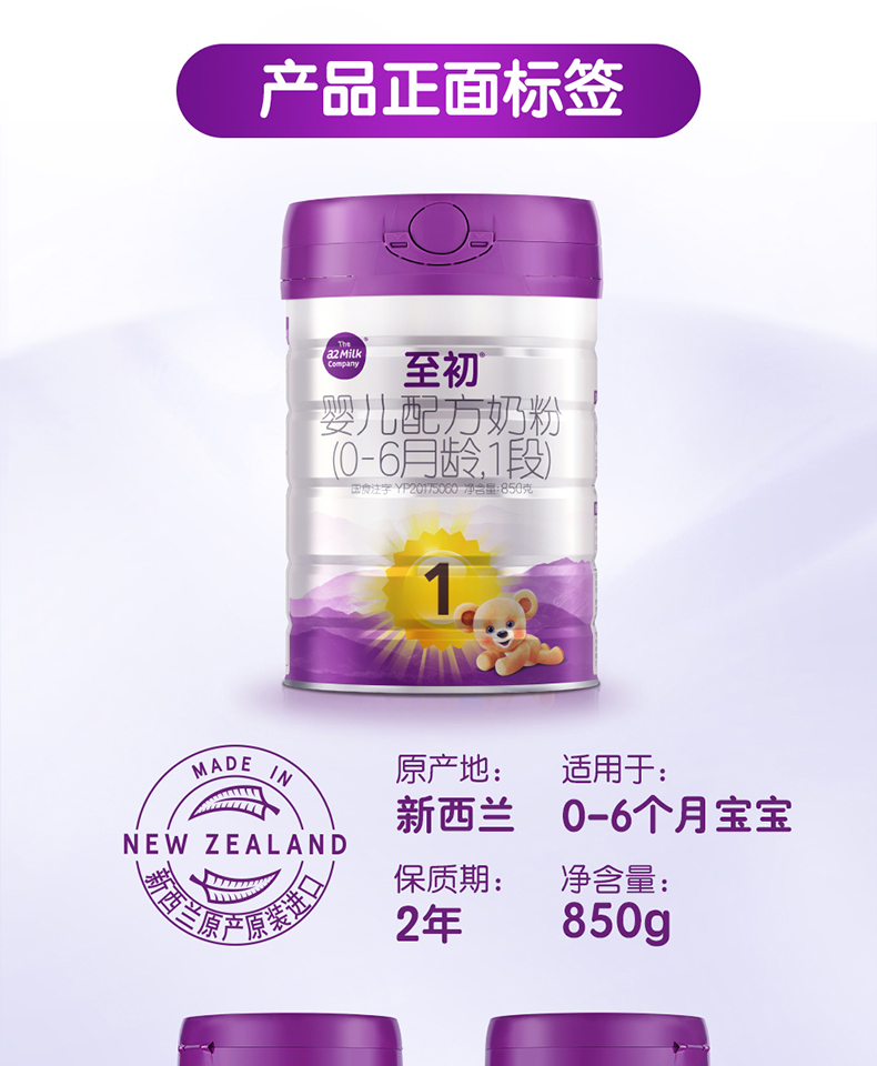 【新国标】a2至初奶粉1段850g(0-6月龄)