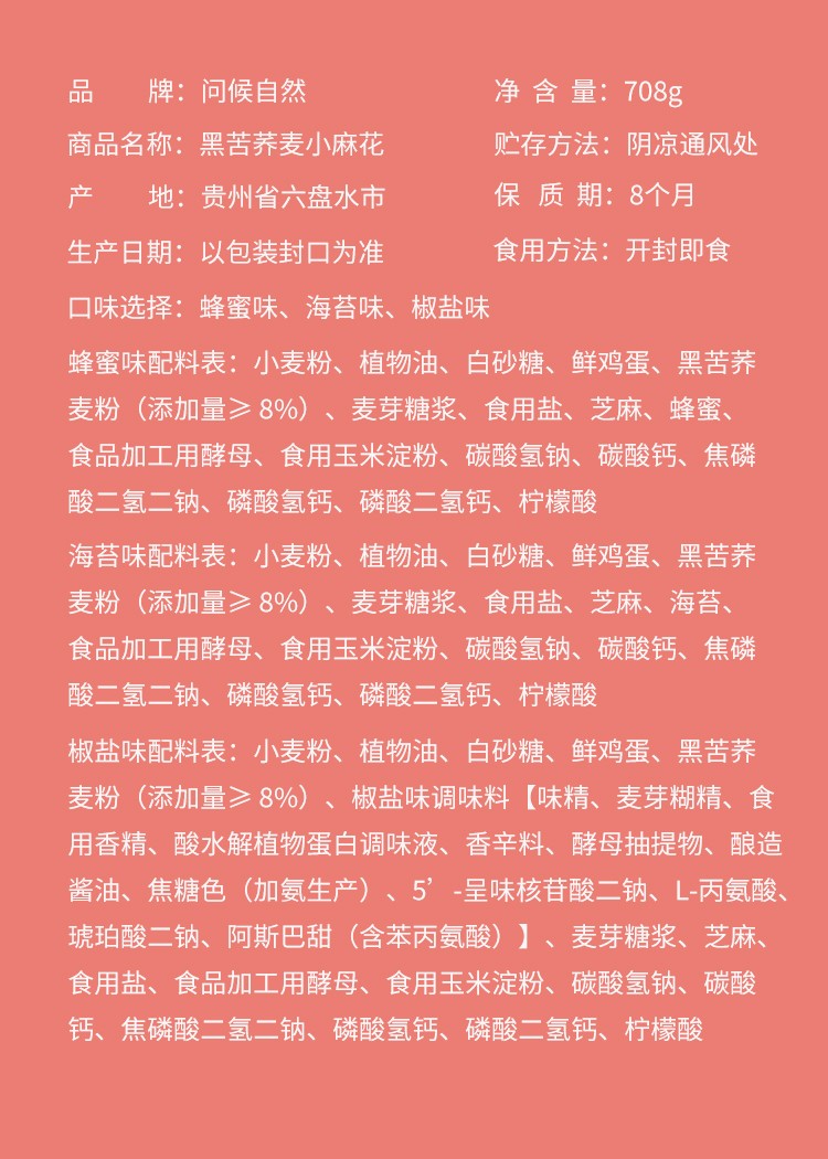 问候自然黑苦荞麦小麻花(混合口味)708g