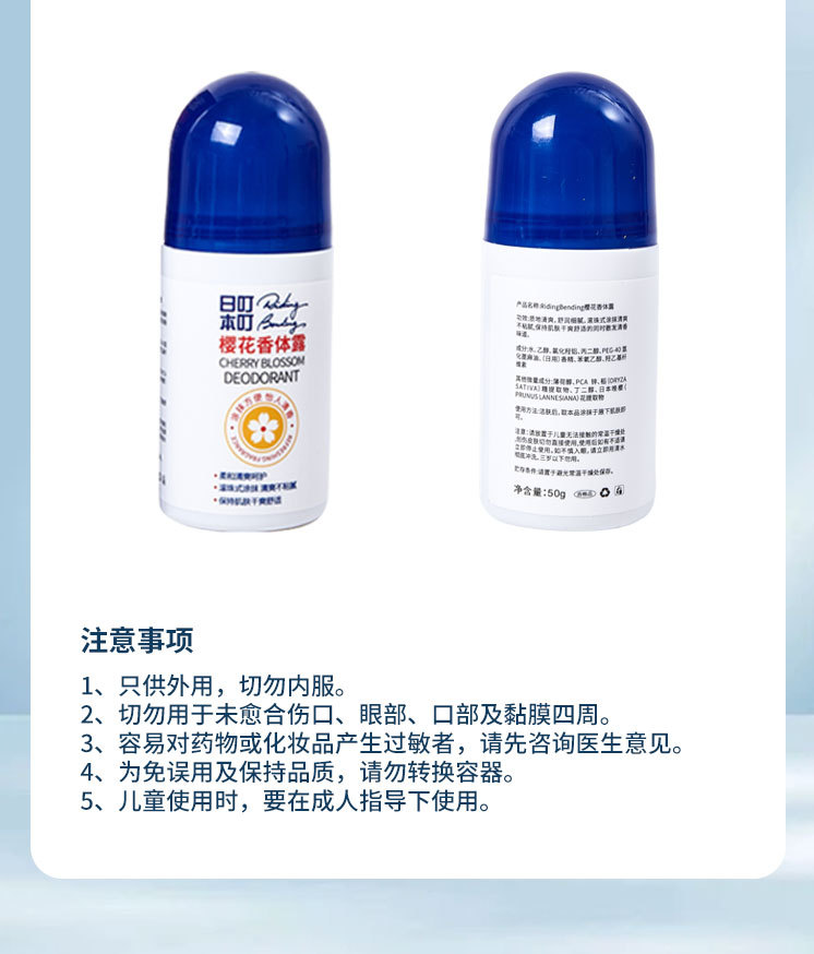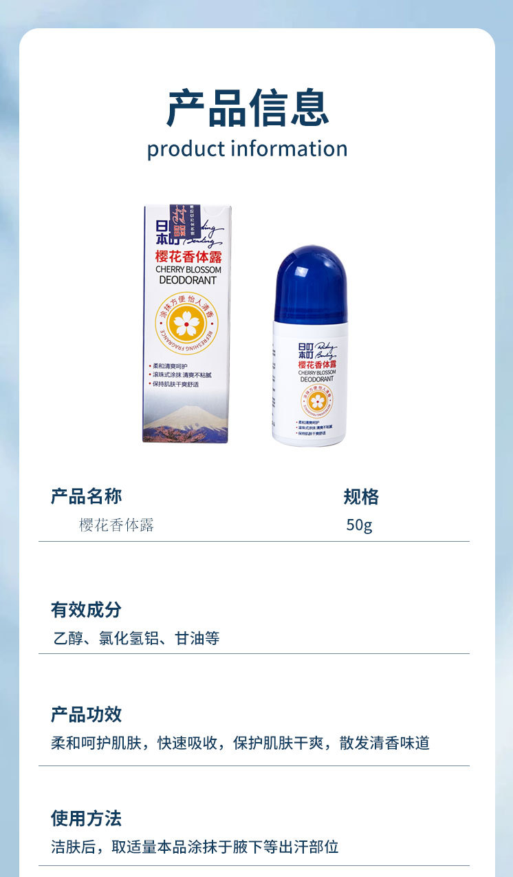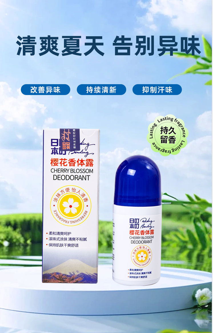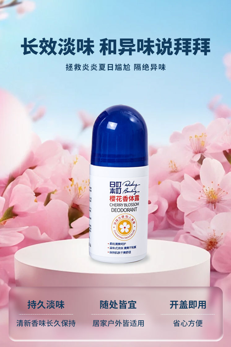 日本叮叮香体止汗露50g 樱花香体露清凉走珠液滚珠户外用清凉