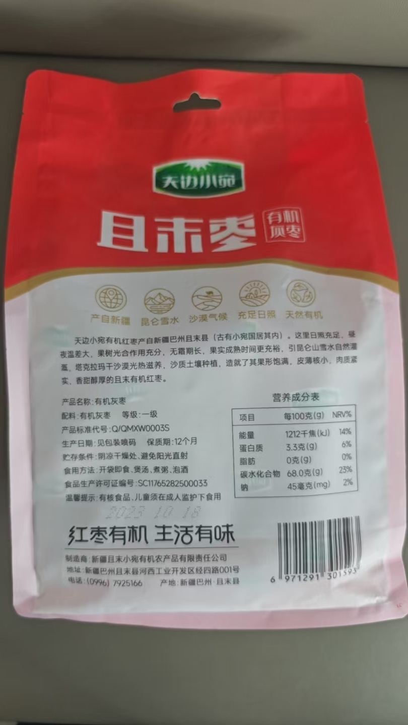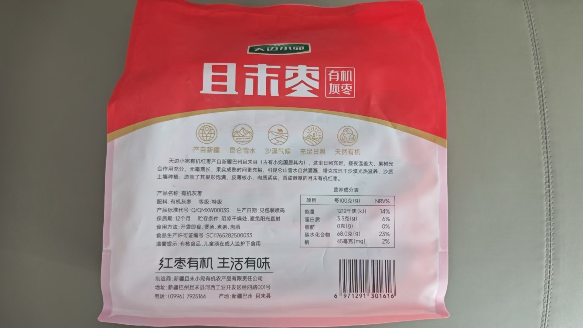 【生产商】新疆且末小宛有机农产品有限责任公司