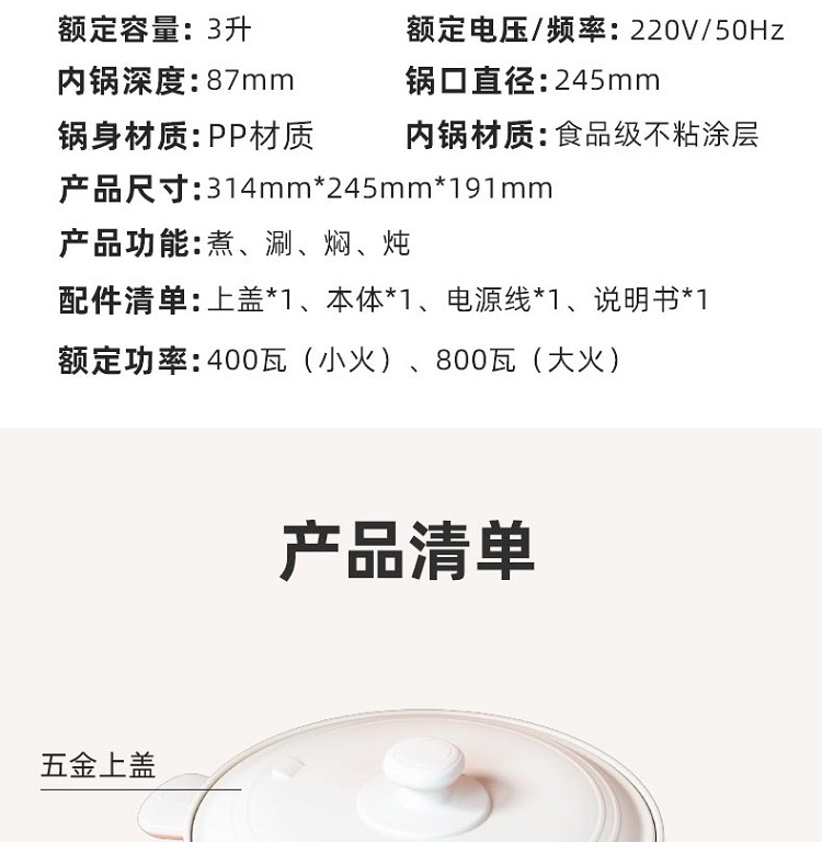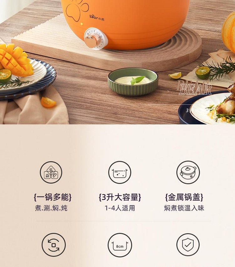 小熊多功能电火锅DRG-E30R6 3L【暑期购】