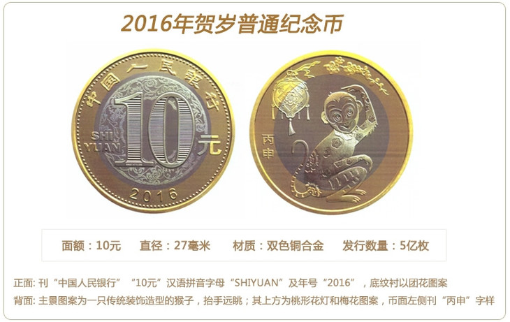 2016猴币 猴年生肖纪念币,银行一手货源! 终身保真!每枚均配送专用保护盒