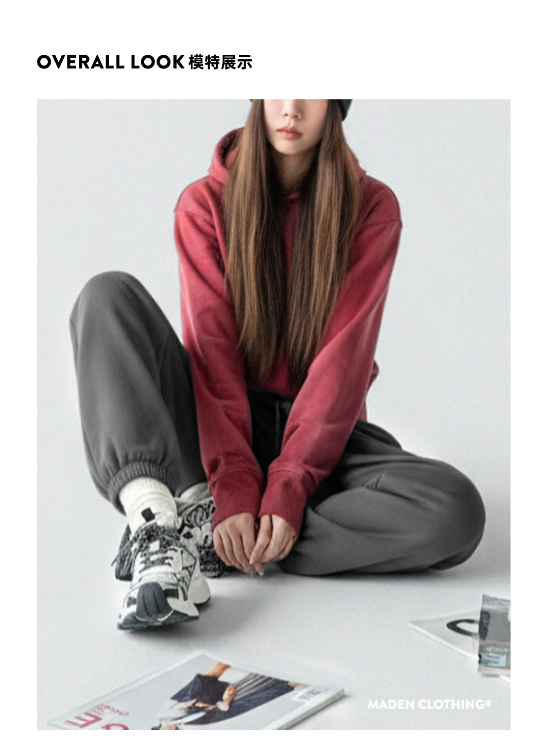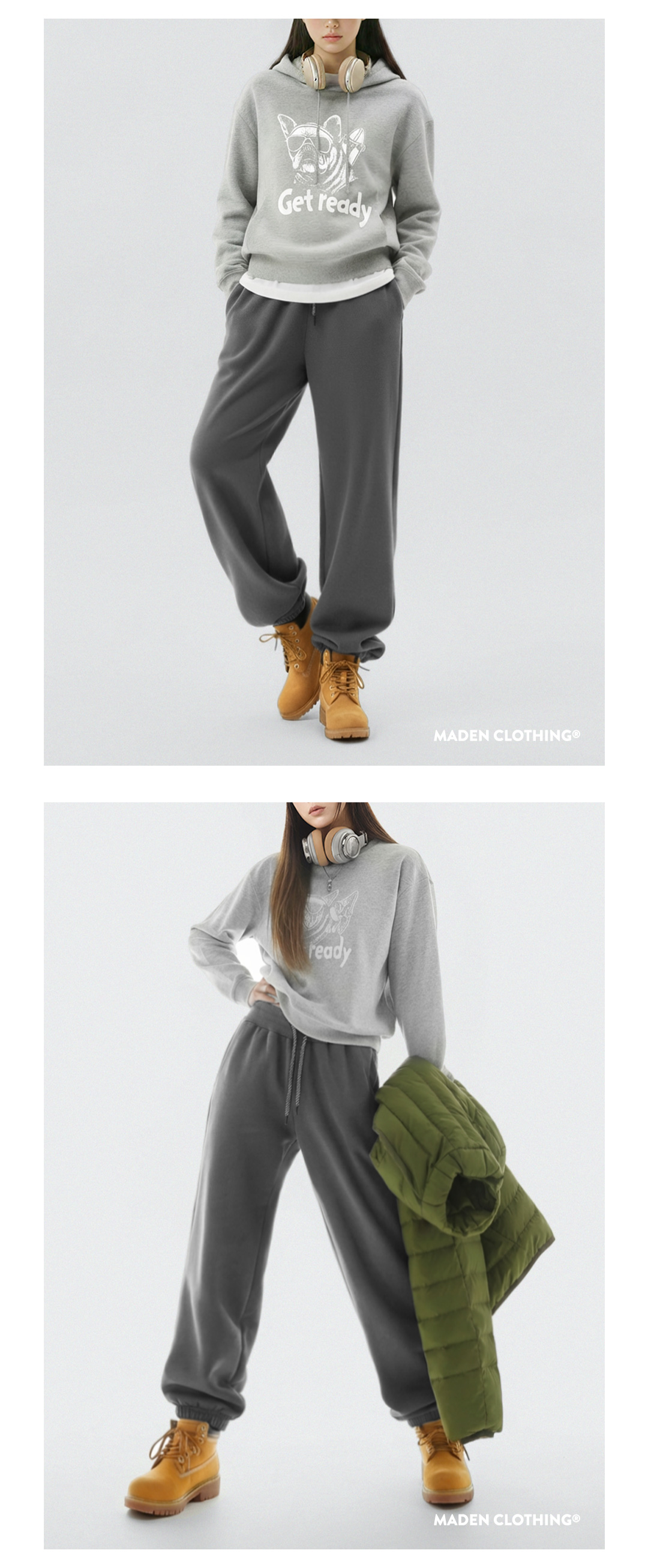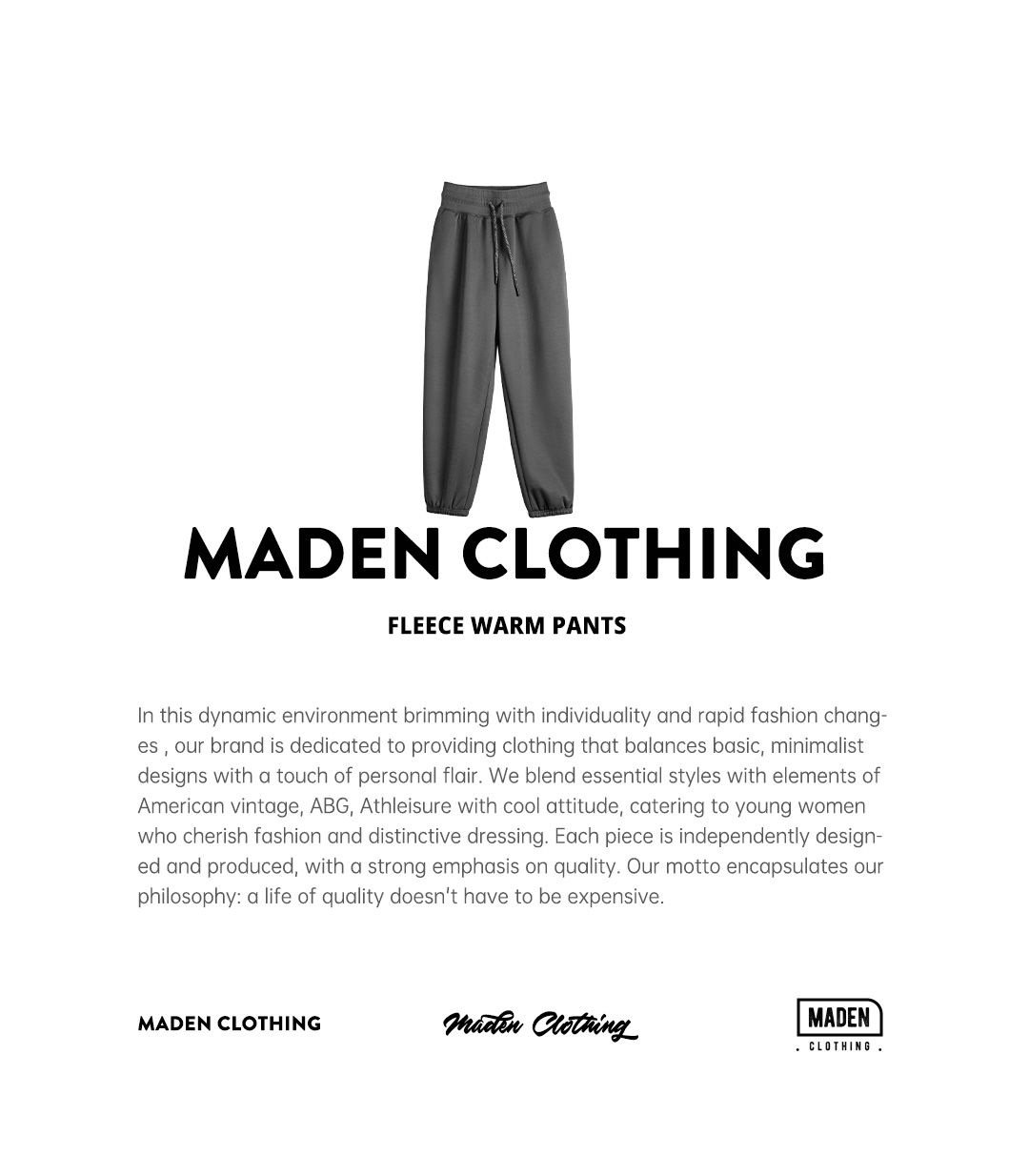 马登深灰色针织加绒厚保暖卫裤抽绳收口束脚休闲直筒长裤子女士冬
