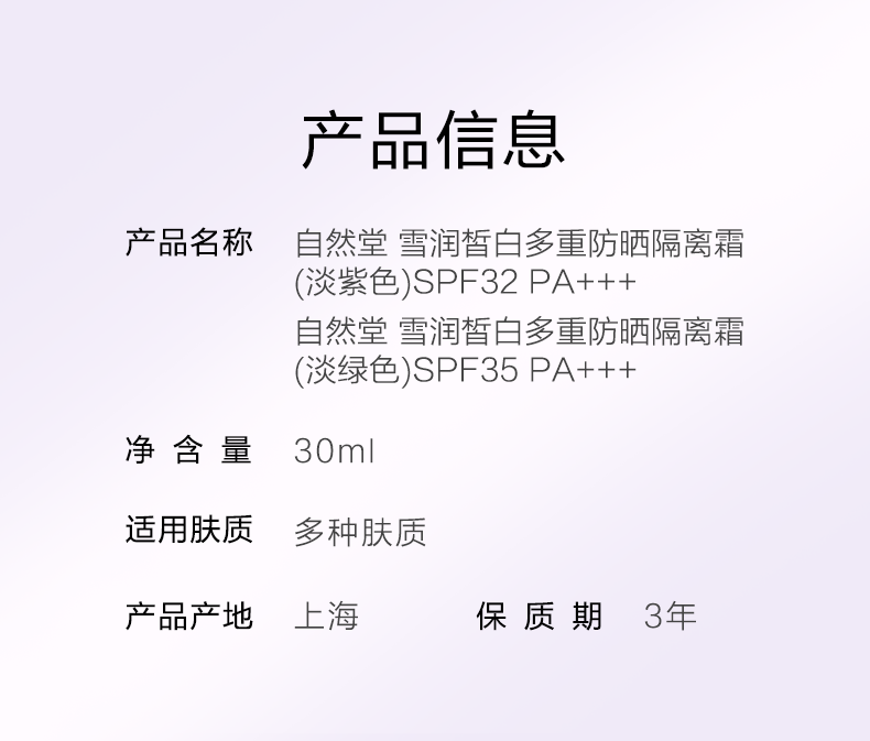 自然堂雪润皙白多重防晒隔离霜SPF35PA30mL