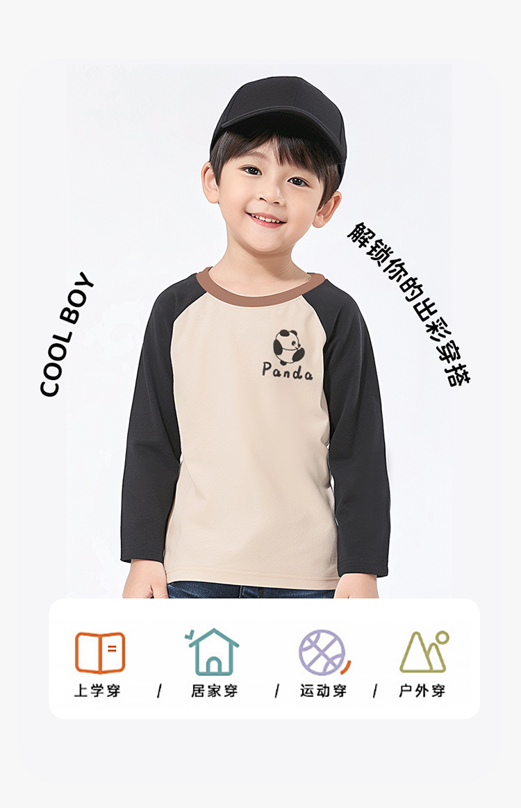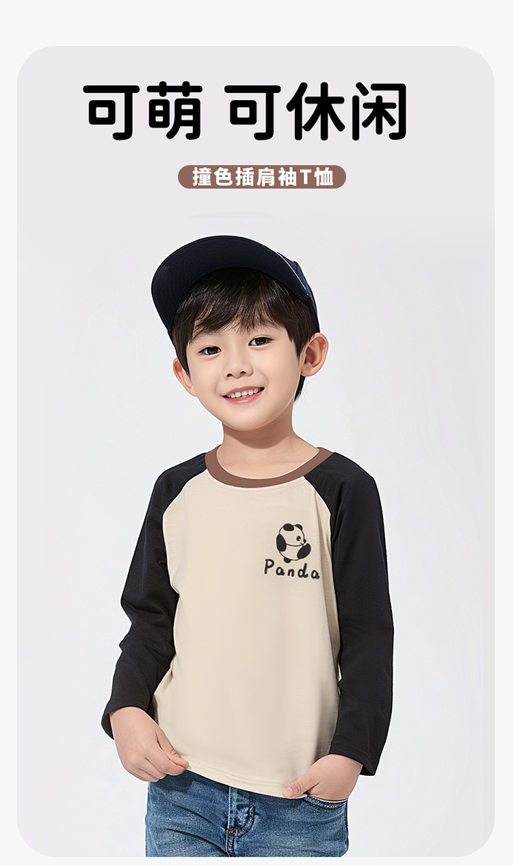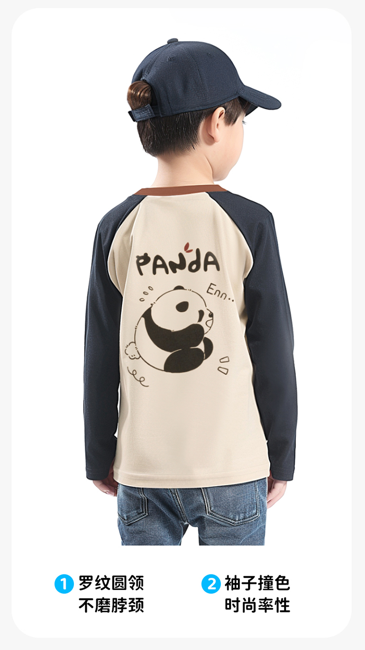 贝贝怡童装男童长袖T恤2024新款薄款春秋款纯棉熊猫上衣ZB1DS058