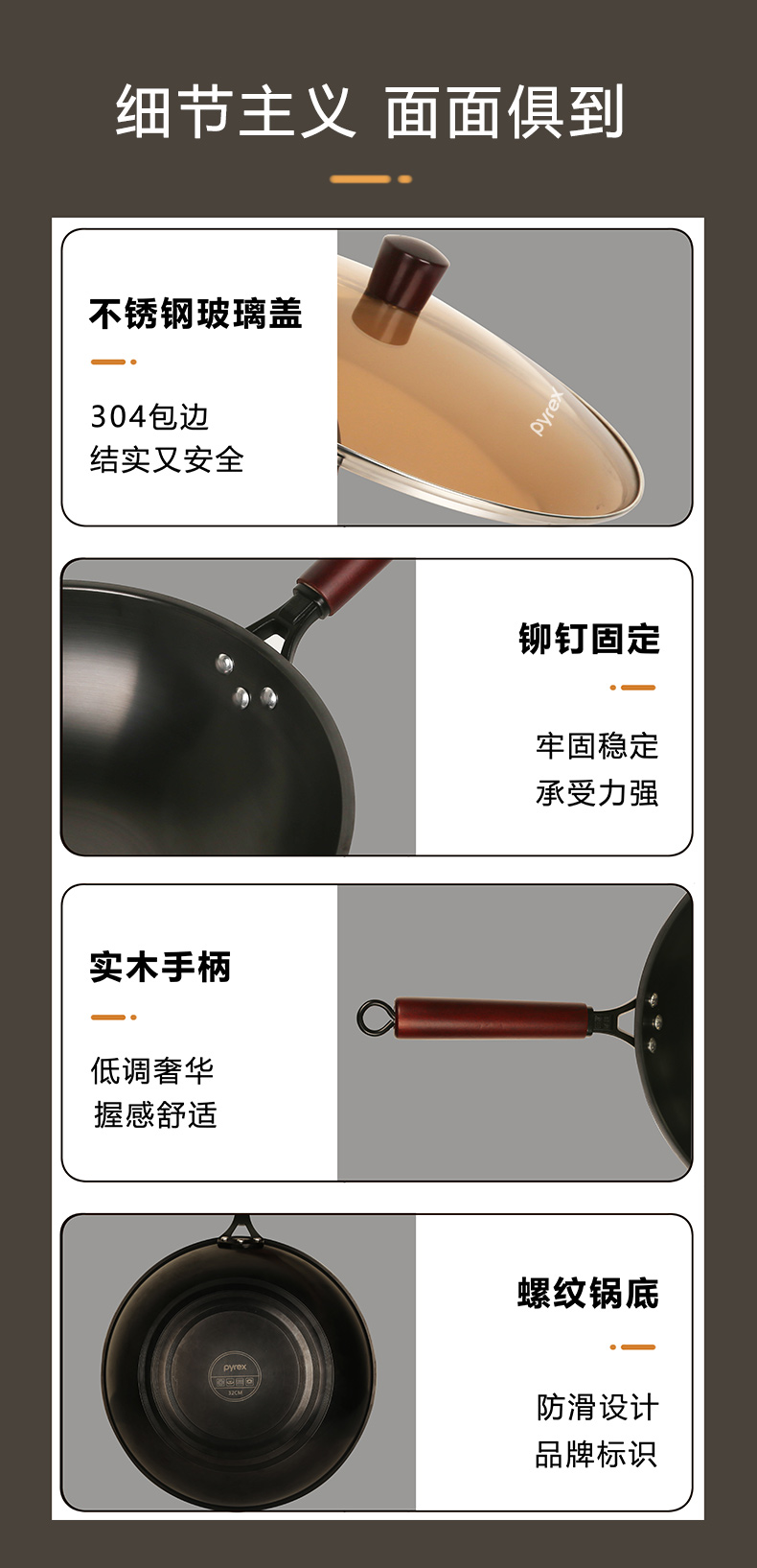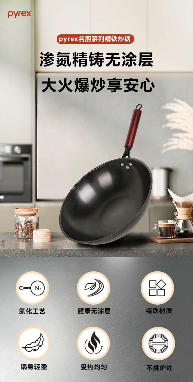 康宁PYREX精铁炒锅 | 精铸无涂层,大火爆炒更安心
