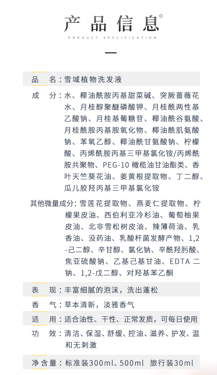 【分销】洄·雪域植物洗发液 | 300ml/ 500ml 氨基酸温和滋养 舒缓控油 清洁洗发水