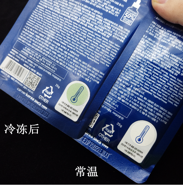 注意AHC的面膜在背面会有一个温度计,建议在使用之前放进冰箱冷藏,待到温度计显示为绿色时再使用~