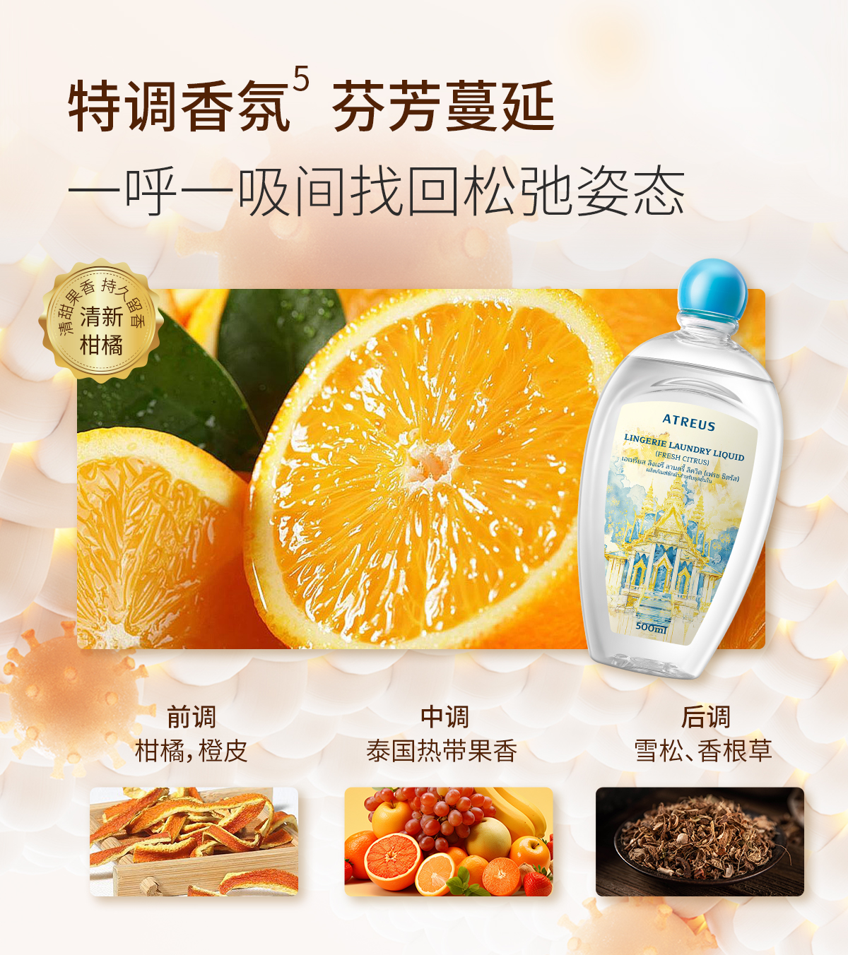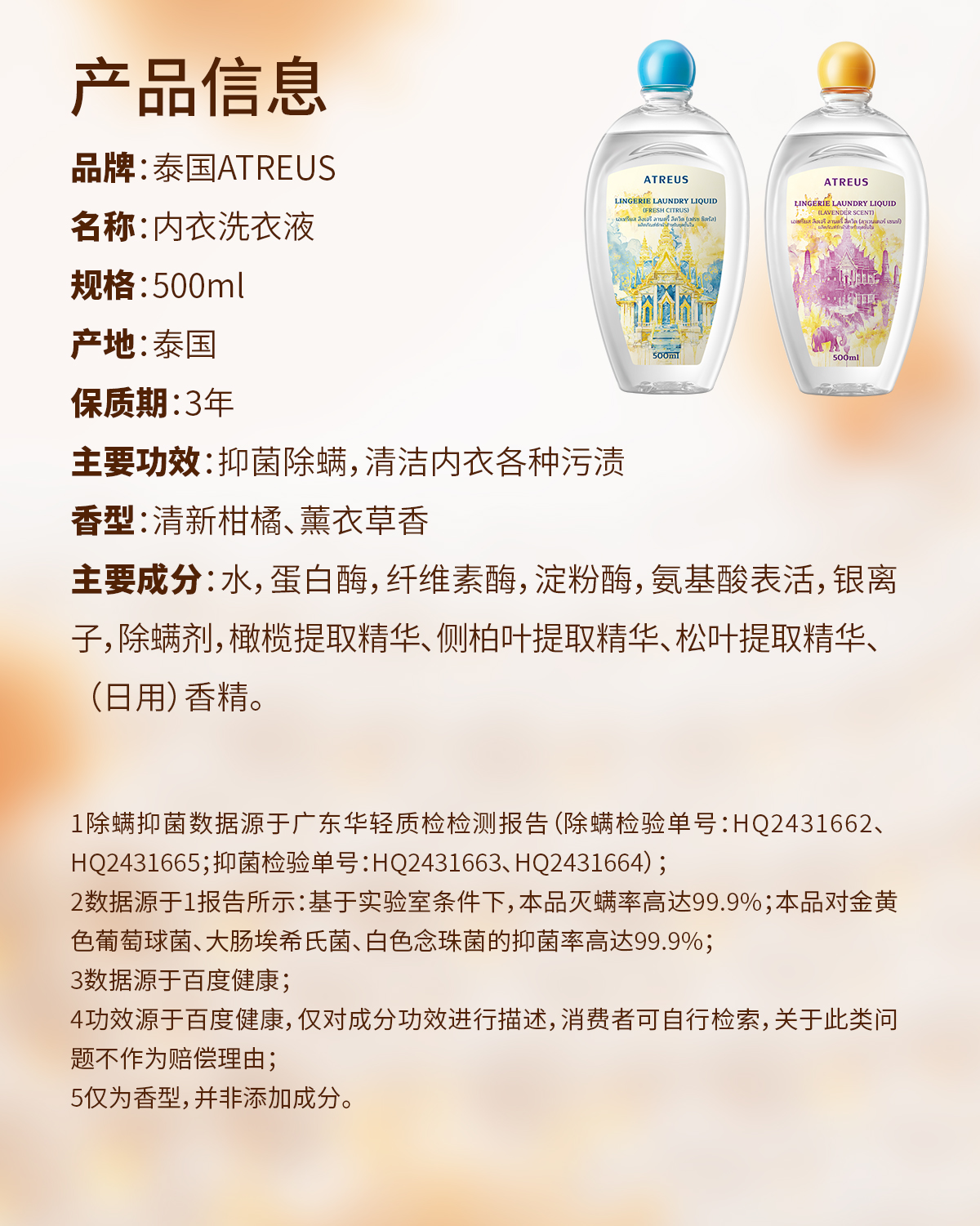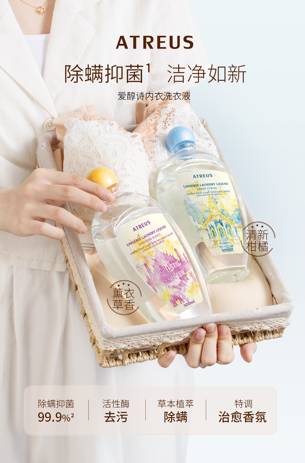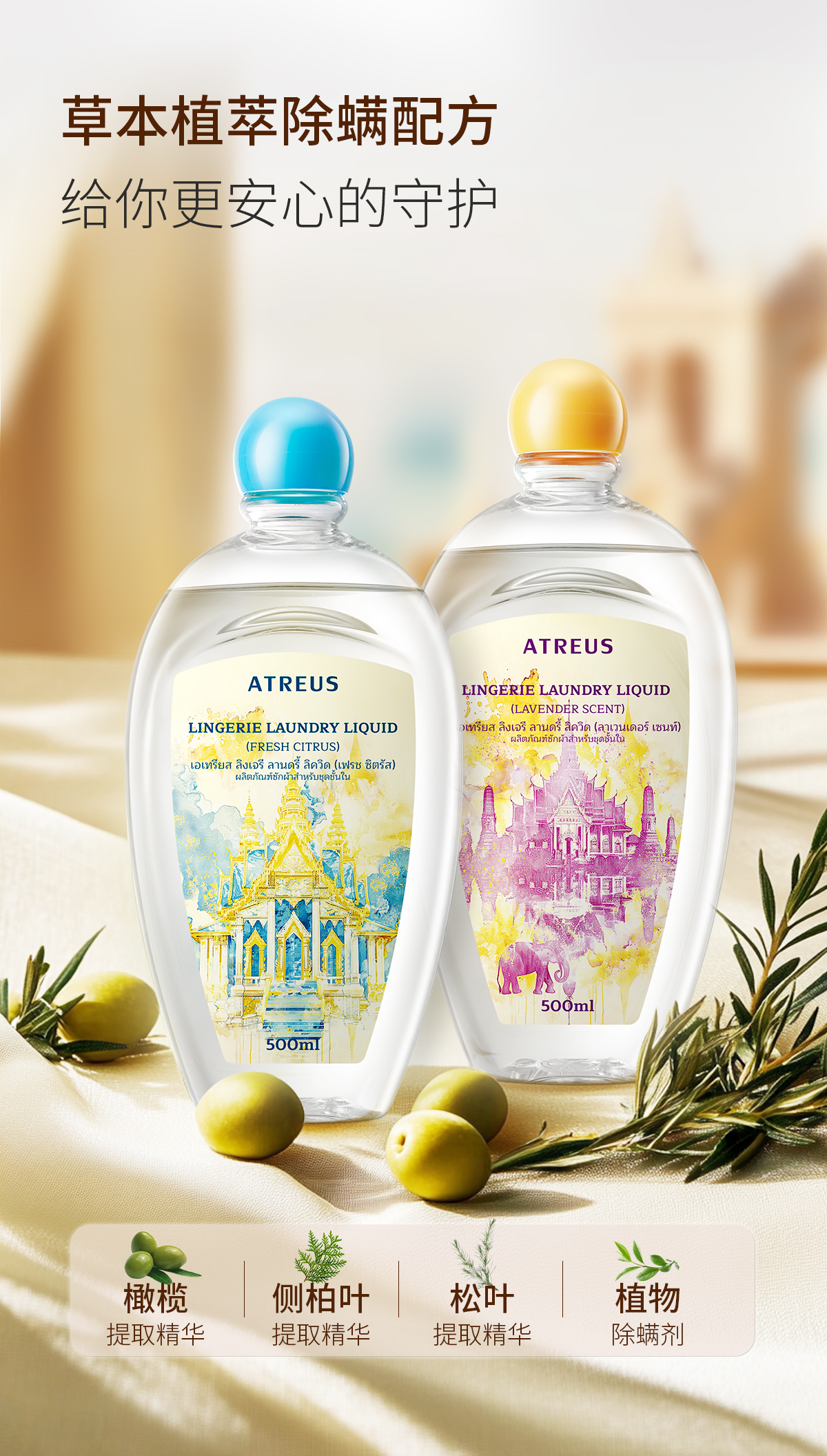 热卖!【超值3瓶装 赠泵头1个】泰国 ATREUS内衣洗衣液 薰衣草香/清新柑橘 99.9%除螨抗菌 500ml*3瓶