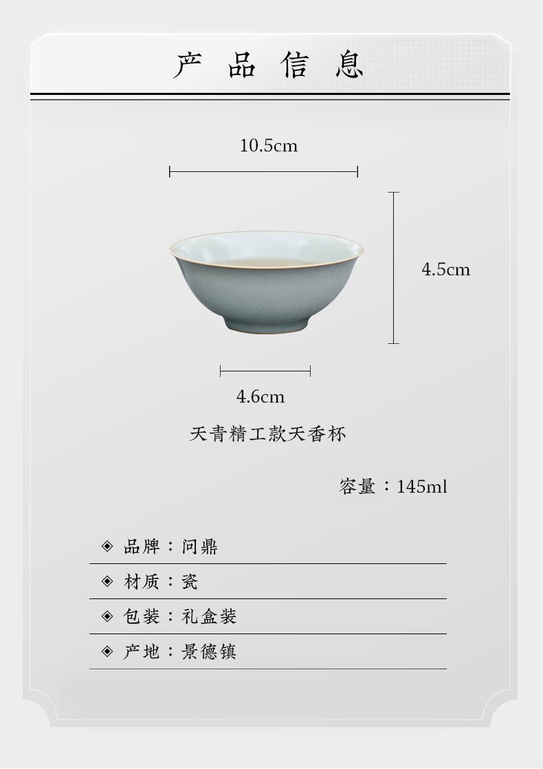 问鼎汝瓷天青老款精工天香杯