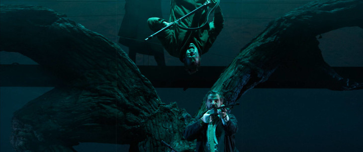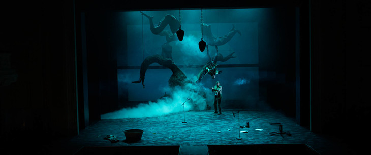 舞台上的事物都是不简单的存在,《Black Rider》中的一大亮点就是Malte Kreutzfeldt设计的那棵树,在不同场景中都格外引人注目。