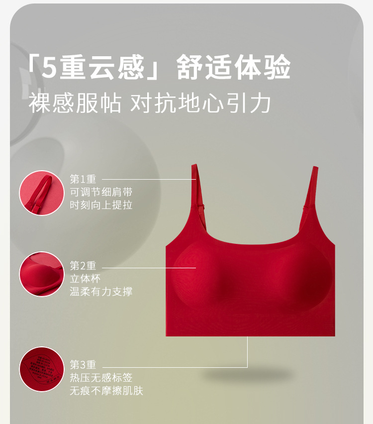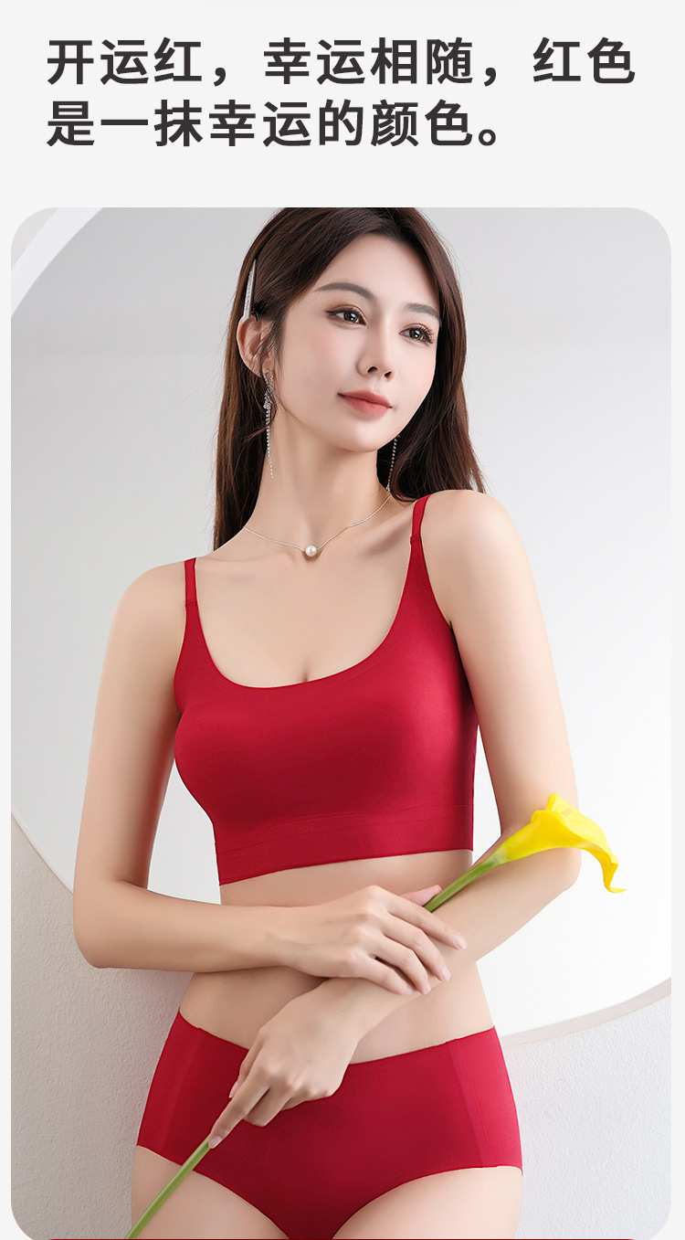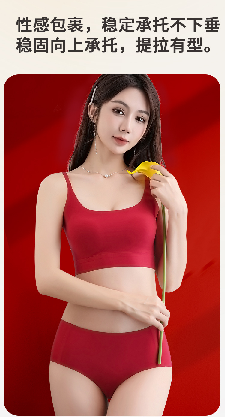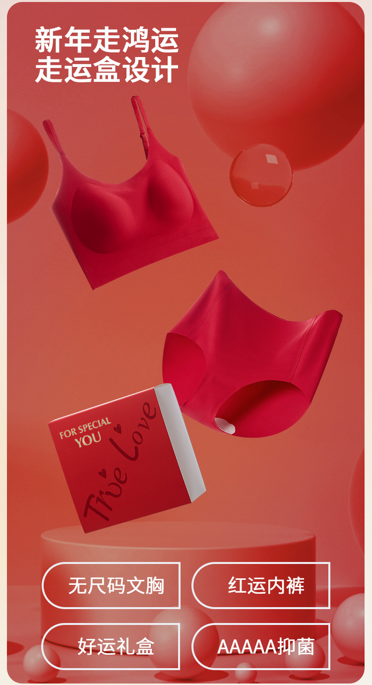 【当红礼盒❗️鸿运内衣内裤套装】过年红红火火,幸福满盈❗️本命年大红女一片式无痕无钢圈一体固定杯美背文胸罩新年礼盒年货礼盒