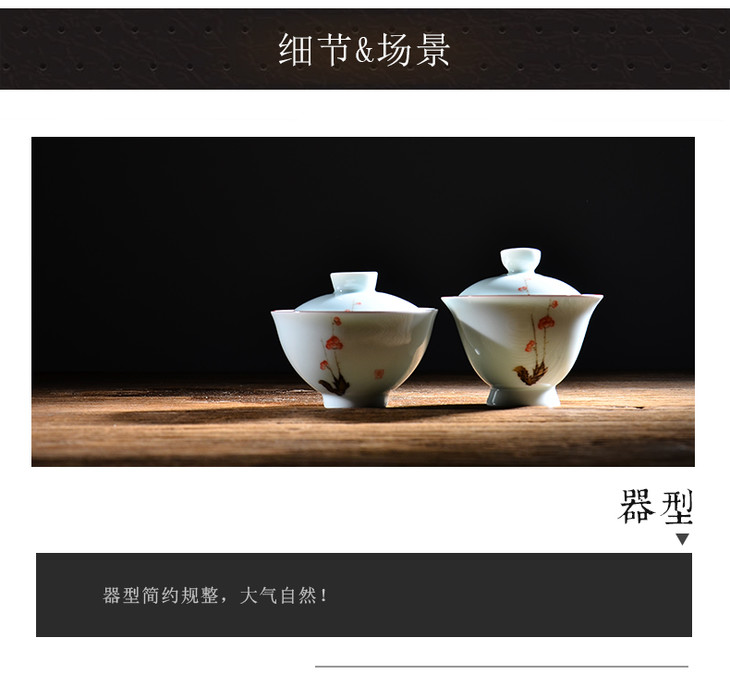 永利汇 高足手绘盖碗陶瓷三才茶碗盖杯功夫茶具泡茶杯大号