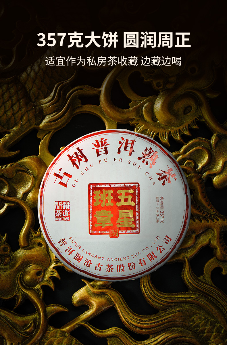 澜沧古茶2022年五星班章大饼云南高山普洱茶熟茶古树茶茶饼七子饼