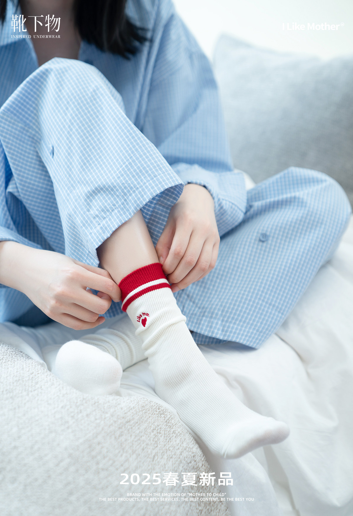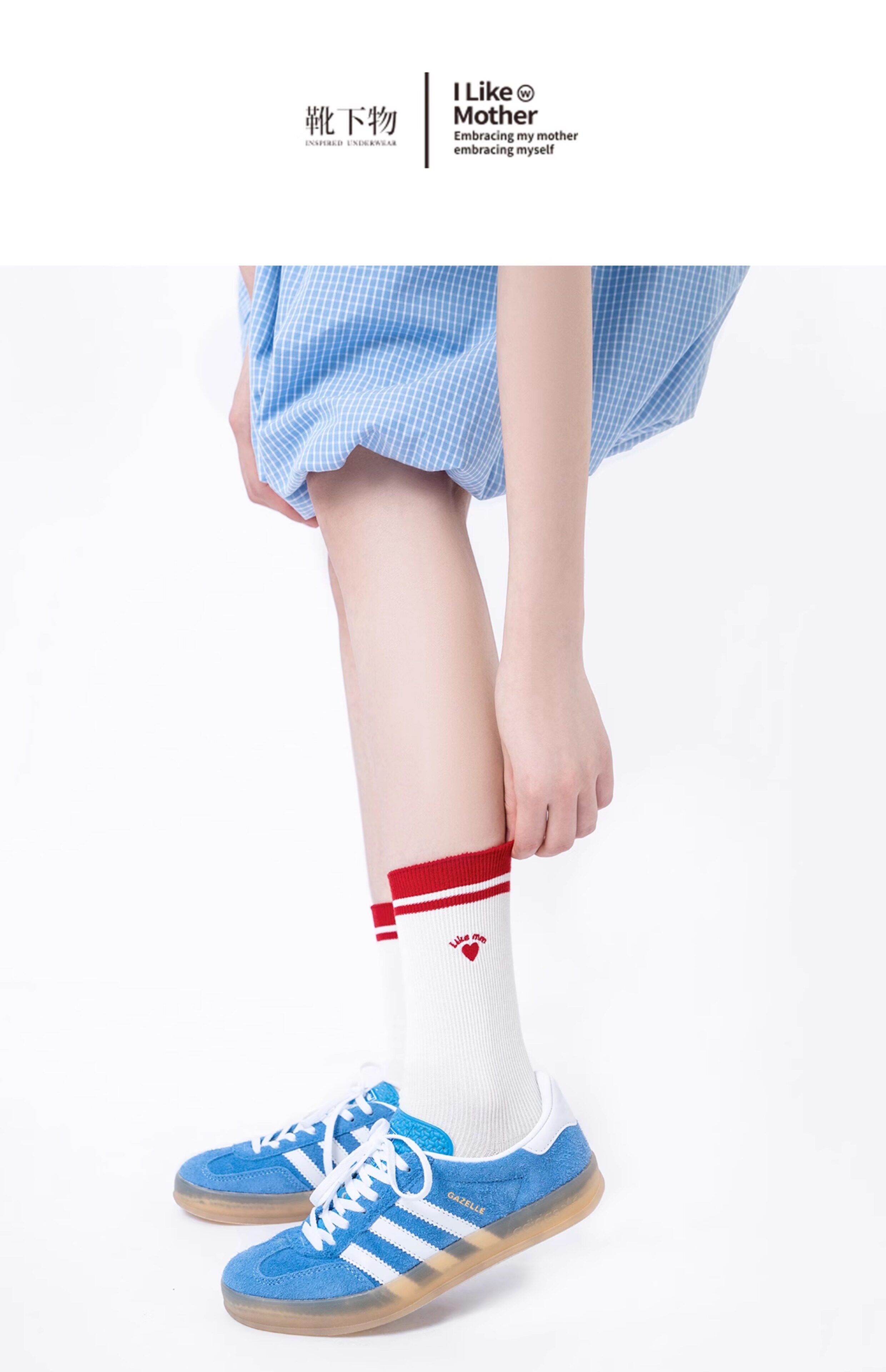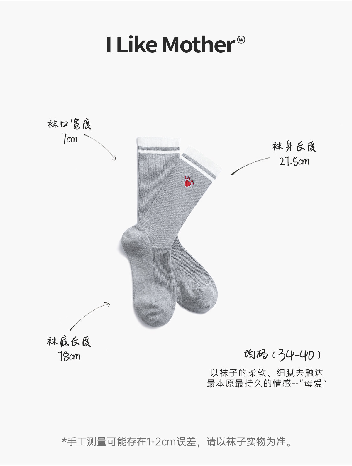 靴下物中筒袜女款桃心刺绣工艺春夏季薄款袜子纯棉透气女士堆堆袜
