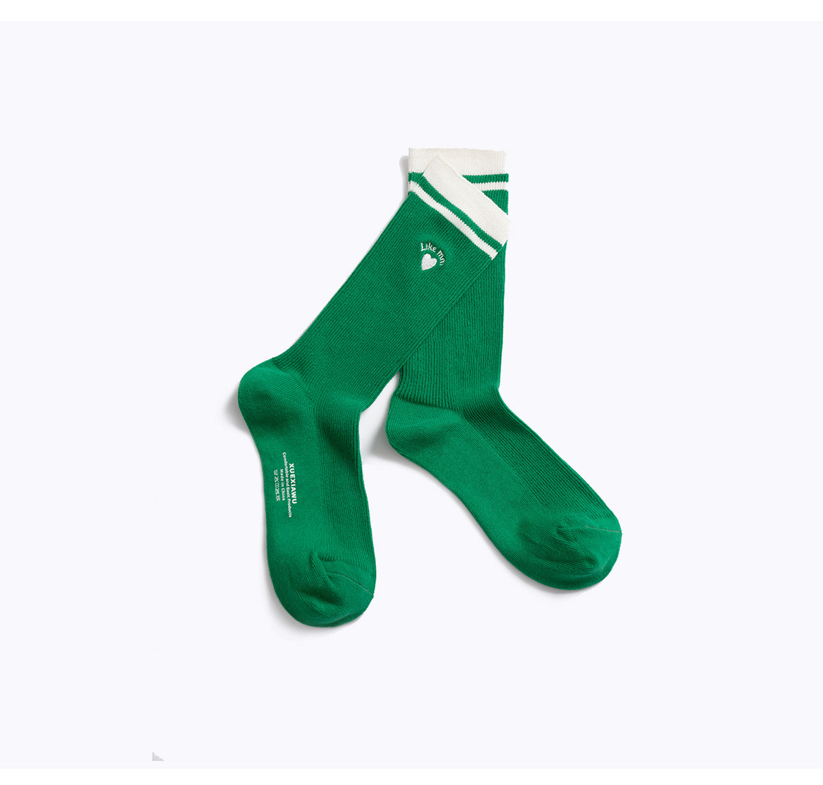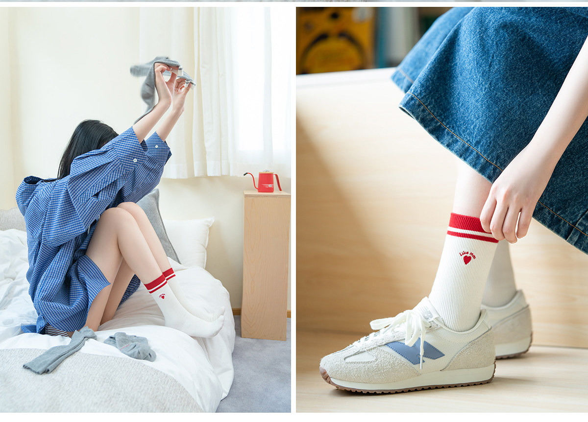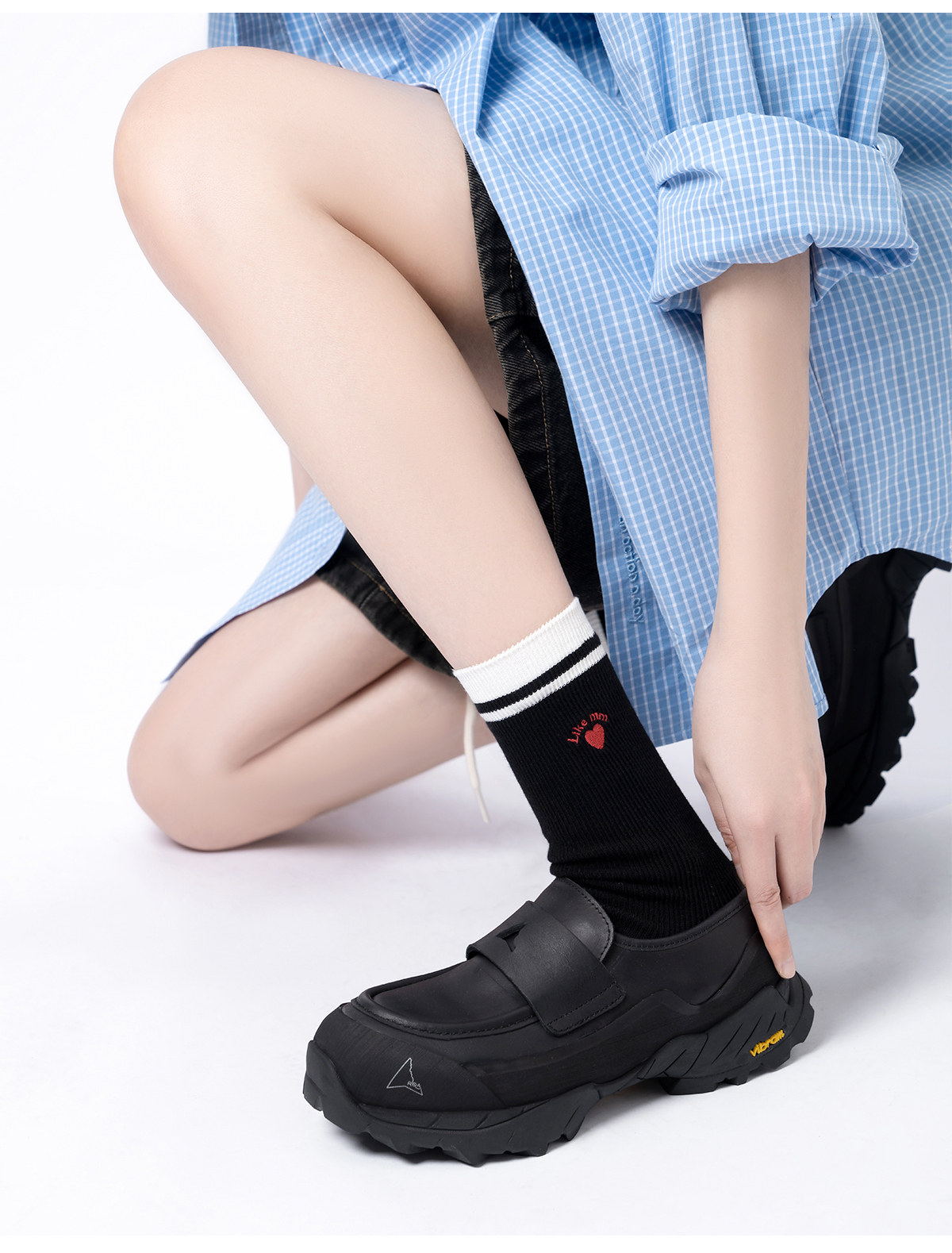 靴下物中筒袜女款桃心刺绣工艺春夏季薄款袜子纯棉透气女士堆堆袜