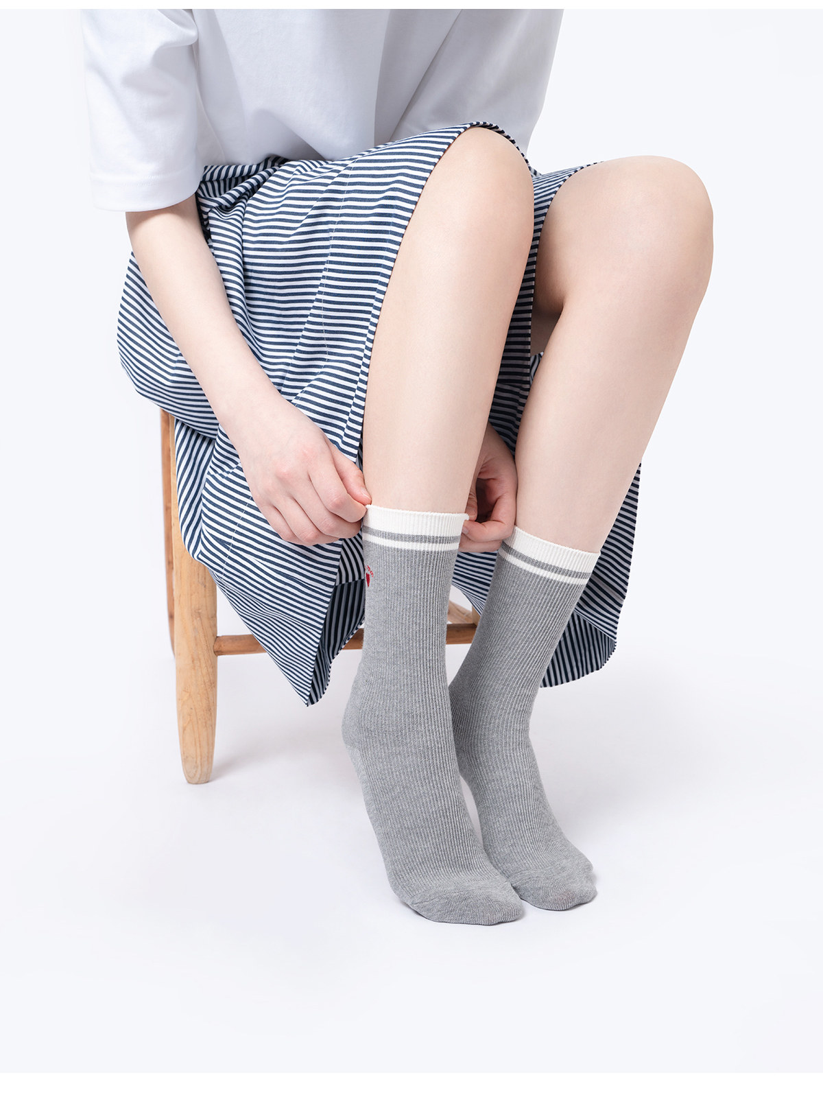 靴下物咖灰色系巴恩风条纹中筒袜子女春秋美拉德保暖堆堆袜配勃肯