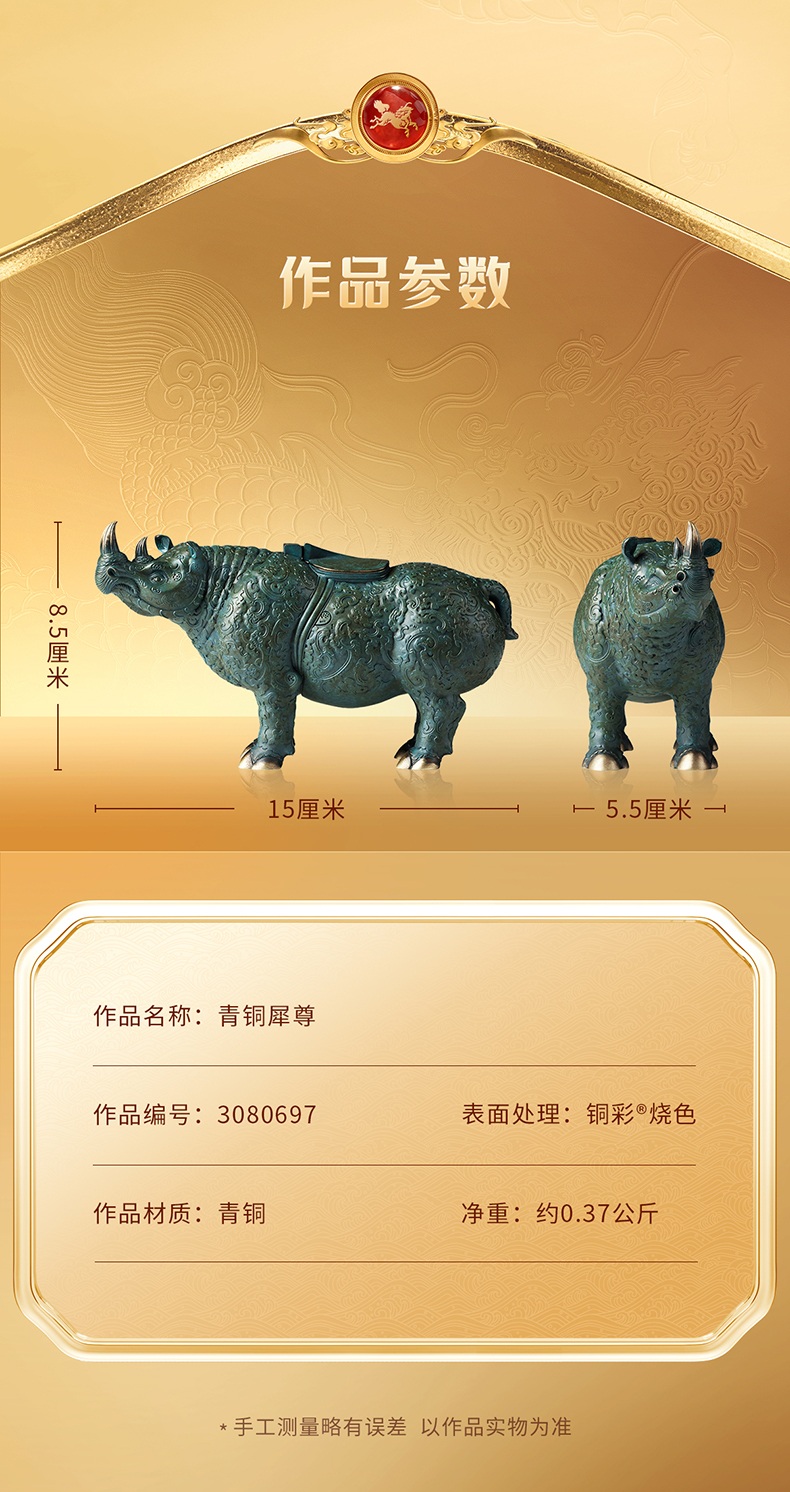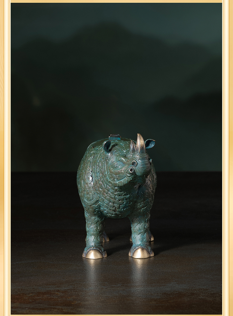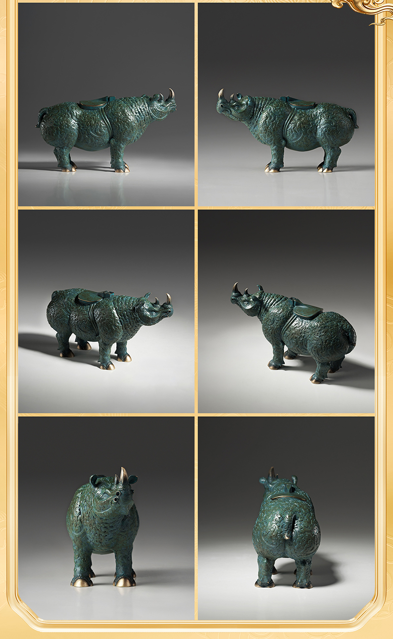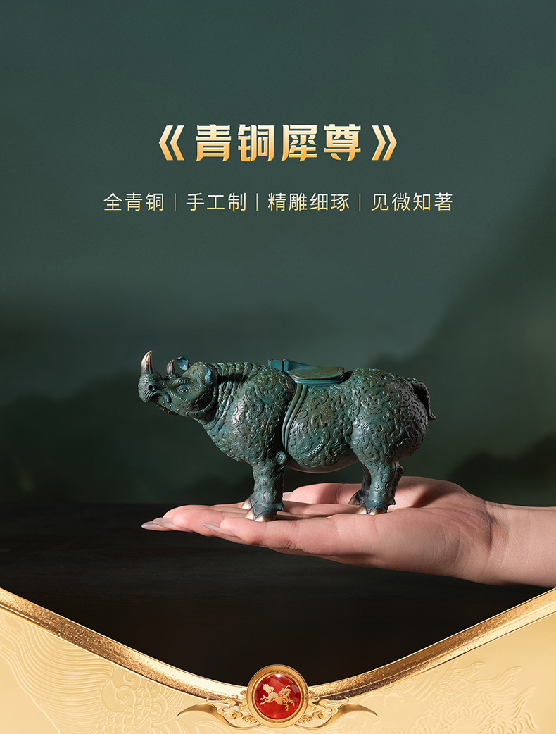 铜师傅 见微系列《青铜犀尊》客厅青铜犀牛摆件 家居装饰工艺品
