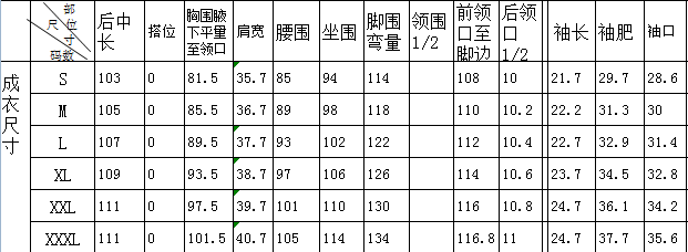 --- 尺码 ---