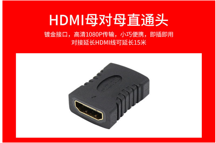 严选【 HDMI母对母直通款】转接头母对母直通加长HDMI线高清转接头1个