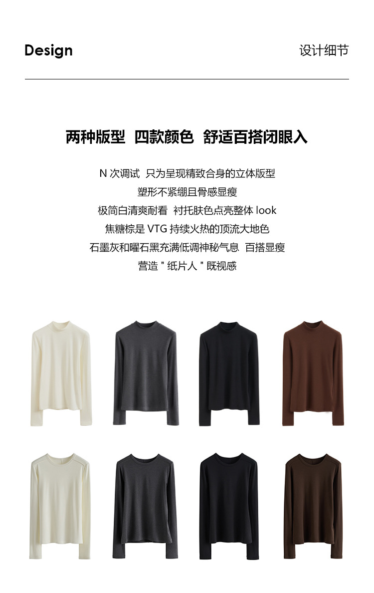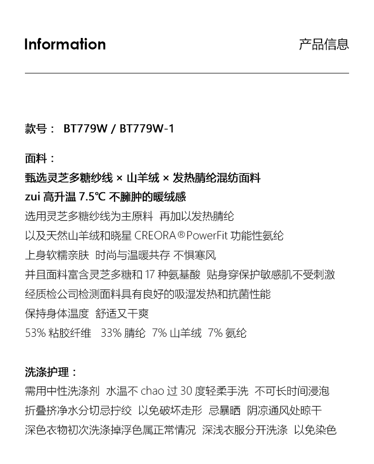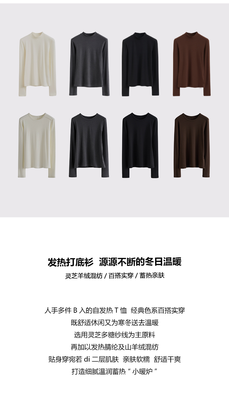 UMILAB|暖绒*灵芝羊绒混纺 细腻亲肤自发热圆领/半高领T恤BT779W