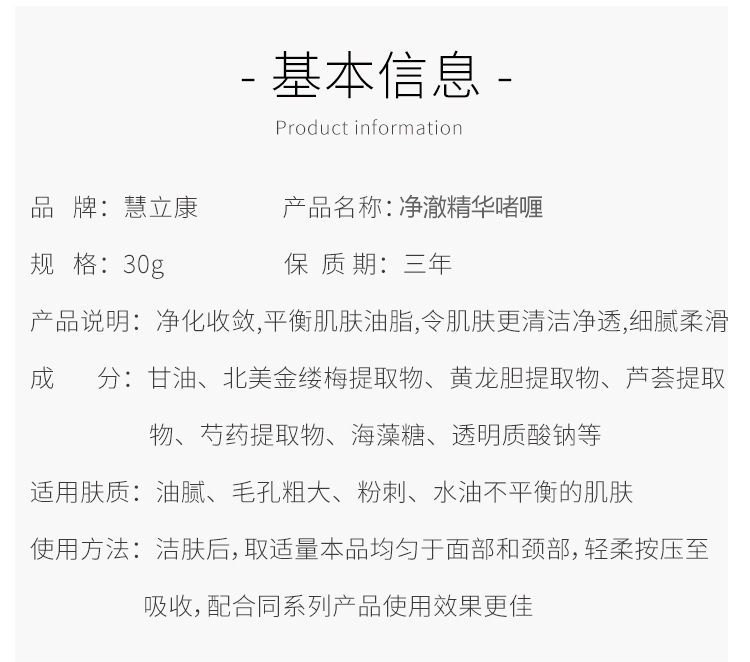慧立康净澈精华啫喱30ml