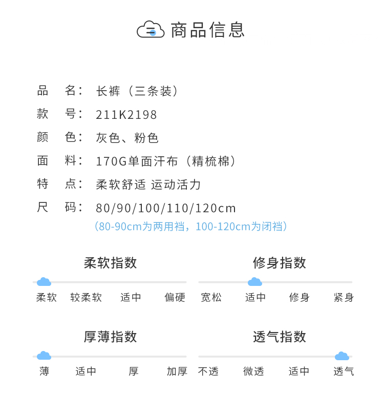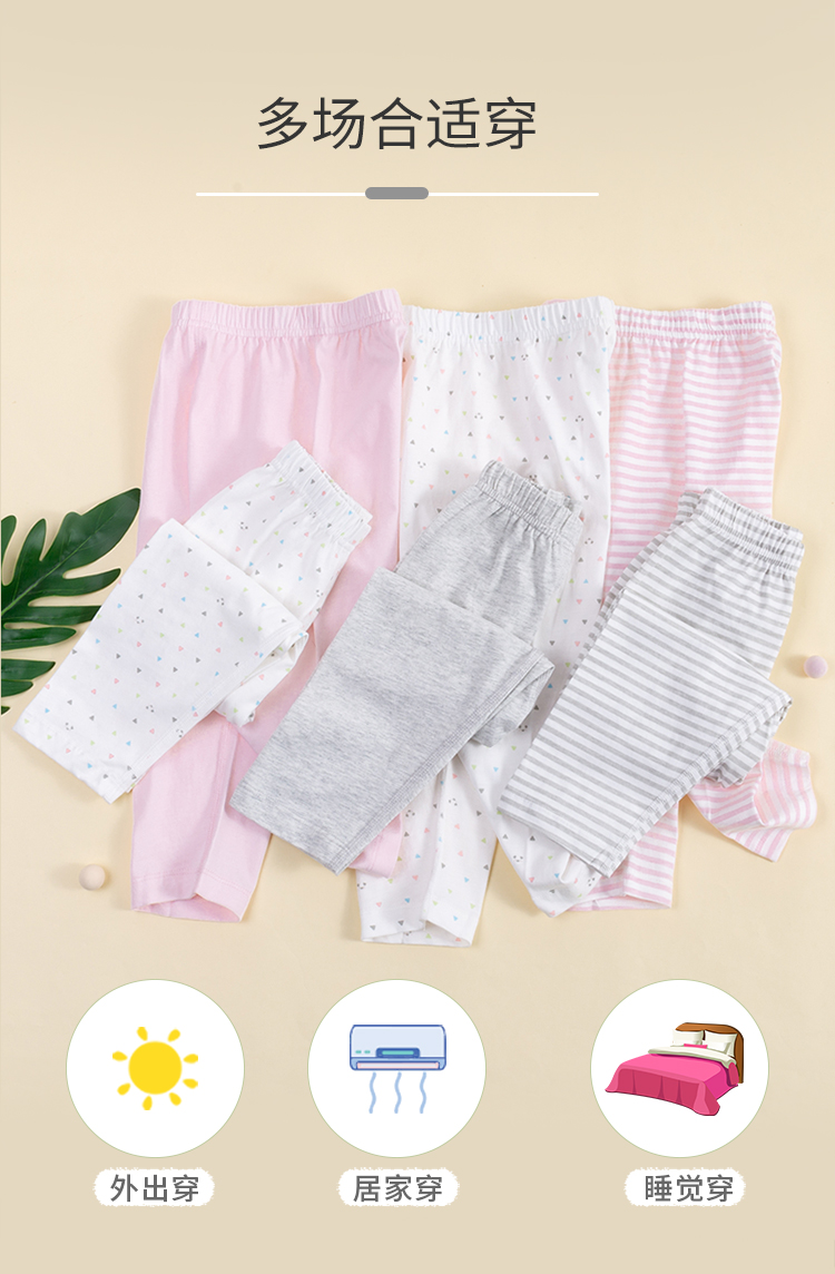 贝贝怡男女童春秋简约素色休闲百搭长裤三条装211K2198