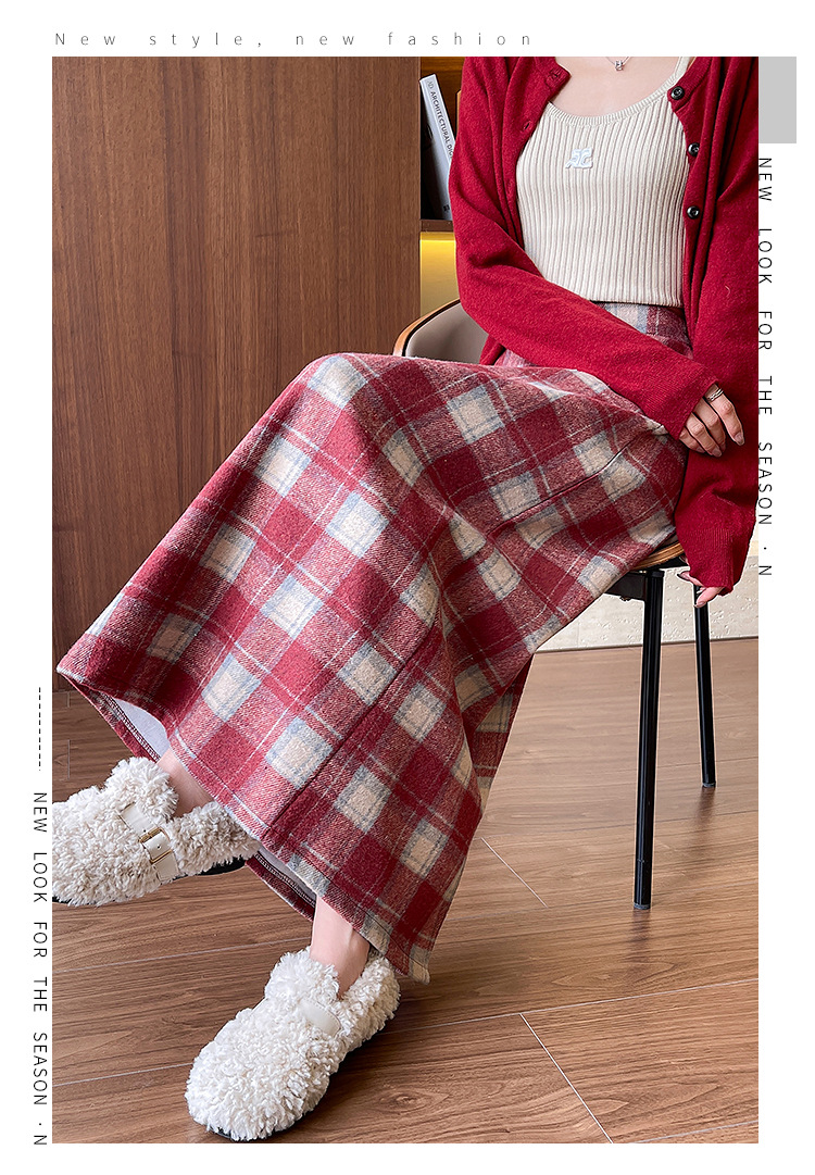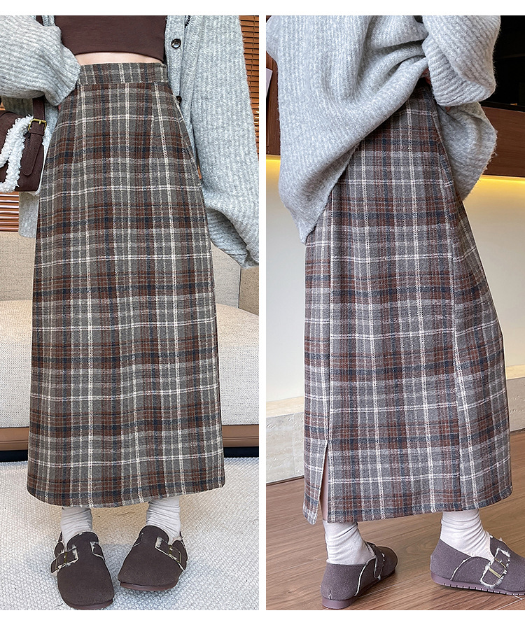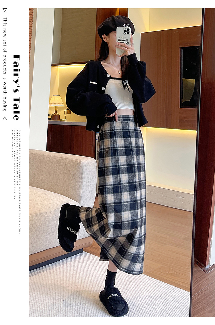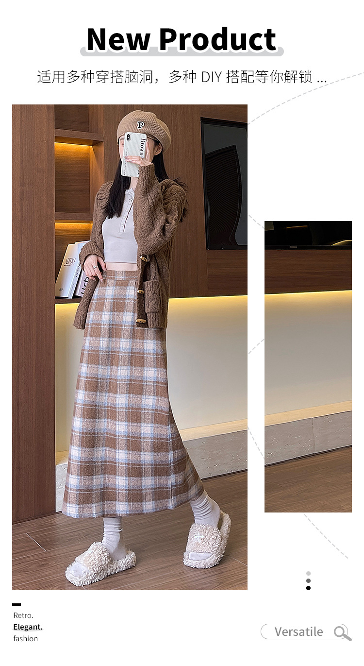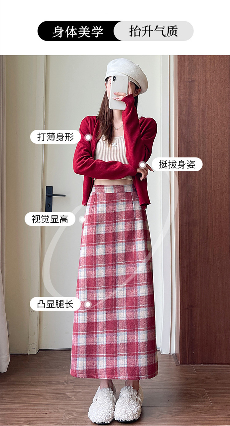 【名称】:复古格子包臀裙
